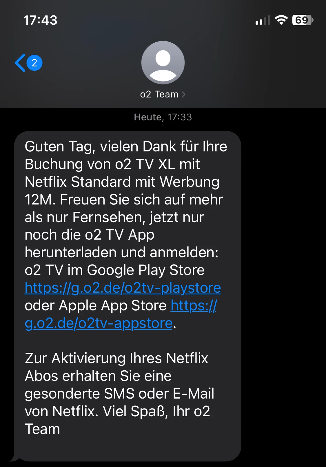 > SMS erhalten und dem Link folgend die o2 TV App erneut heruntergeladen.