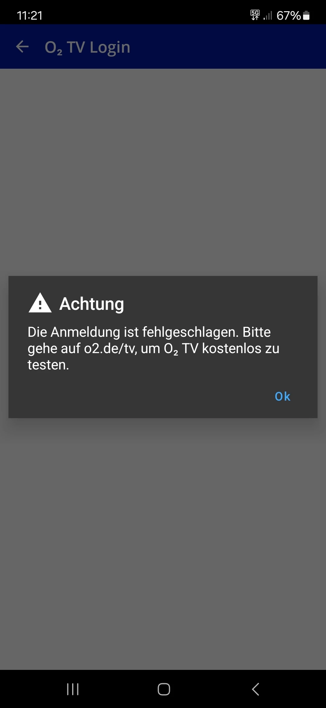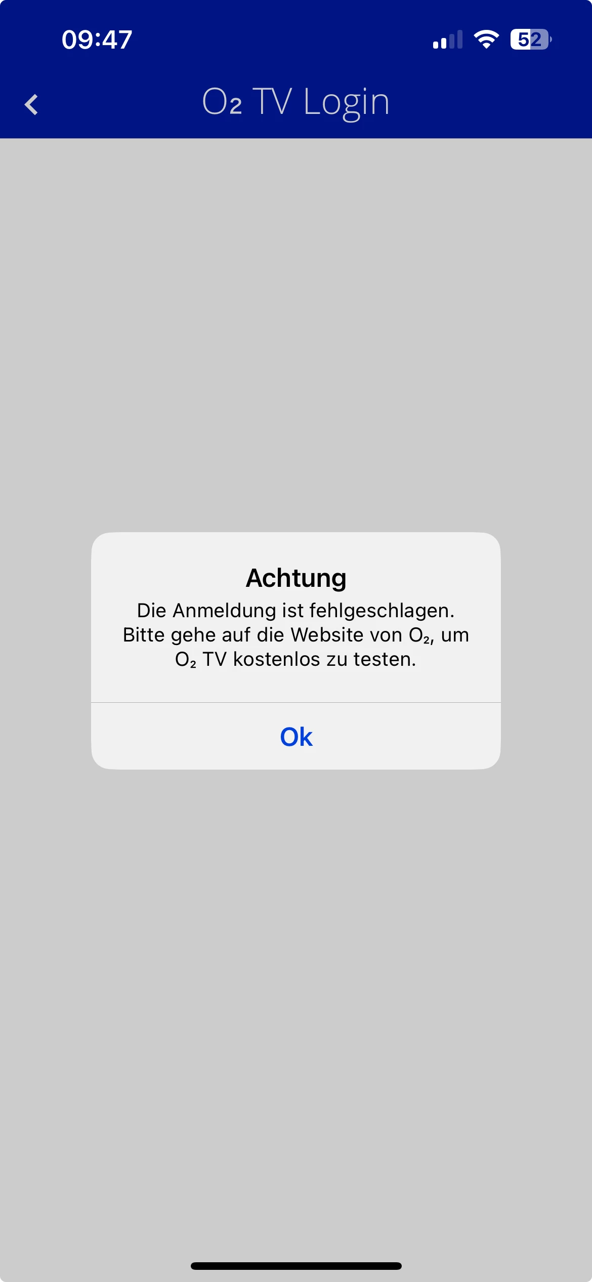 o2 TV Registrierung / Login fehlgeschlagen