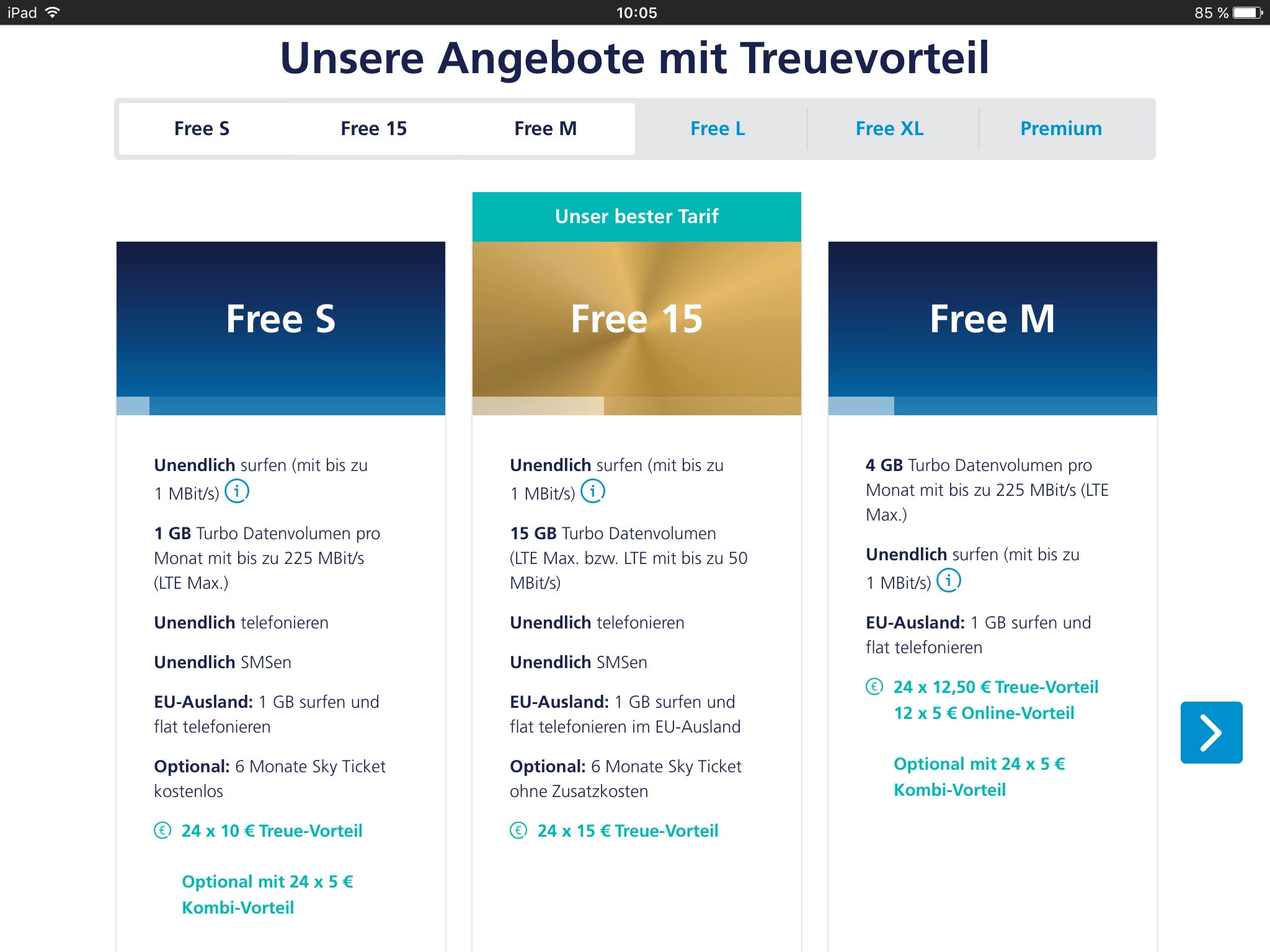 Ich möchte gern von meinem o2free S Young Flex in den neuen Tarif o2 free 15 für 14,99€ (24 Monate) wechseln. Leider scheitert die Auswahl aus dem Link, den ich per E-Mail erhalten habe. Kann mir jemand meinen Tarif verlängern, zu den Konditionen 24 Monate lang zu14,99€?