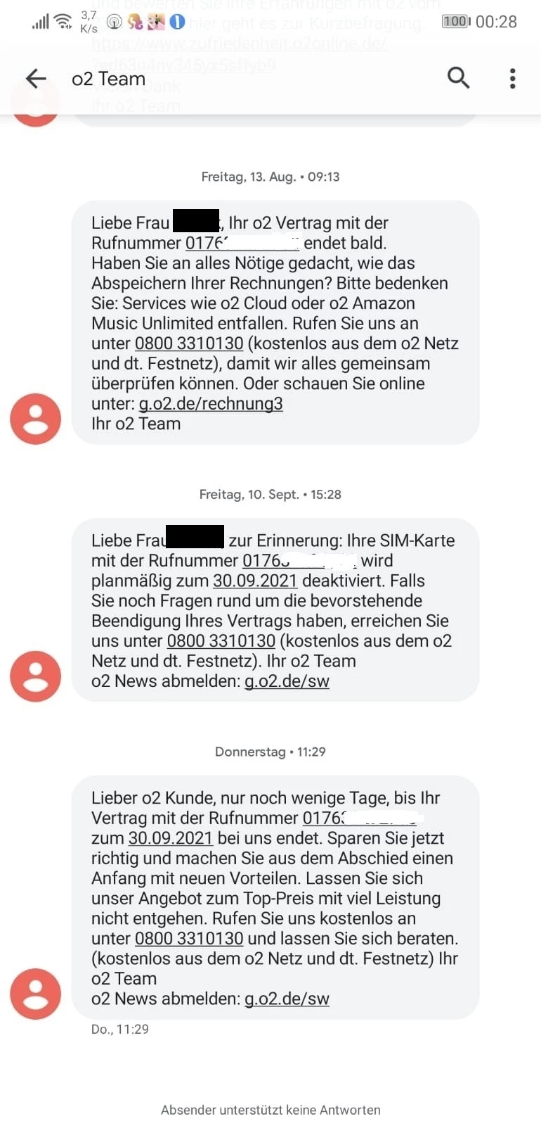Ich hoffe, dass wir dich bald wieder als o2-Kunde begrüßen dürfen.