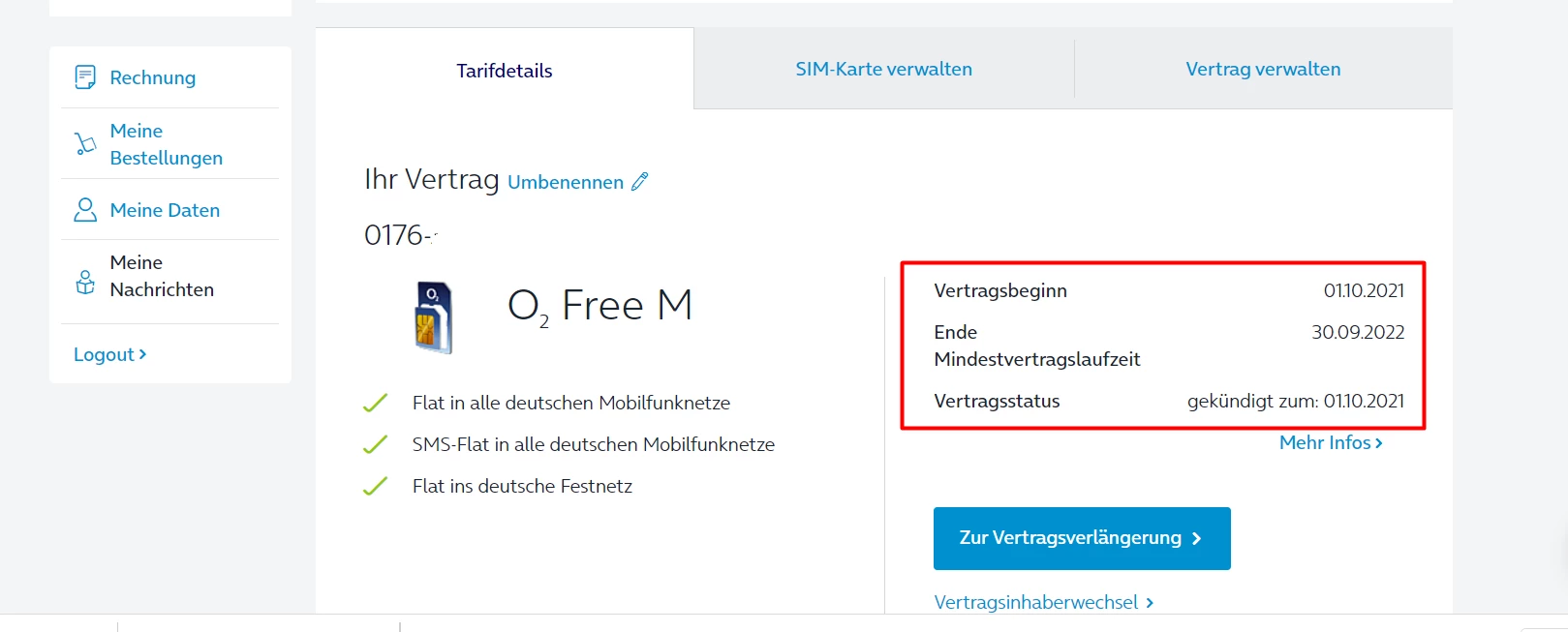 obwohl ich meinen O2-Vertrag gekündigt habe, wurde von o2 meinen Vertrag noch automatisch ein Jahr verlängert. Ich wollte es nicht !!! Im Anhang schicke ich Ihnen sowohl Kündigungsnachricht als auch Screenshot im Website. Können Sie mir bitte helfen ?