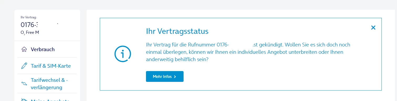 Ich bin nicht sicher, aber vor einem Jahr habe ich abgesendet. Ich habe schon Kündigungsbestätigung bekommen aber jetzt kann ich es nicht finden. Nach der Kündigung habe ich jede Monat einen Brief bekommen über “Unser persönliches Angebot für Ihre gekündigte Nummer 0176 xxxxxxxx”