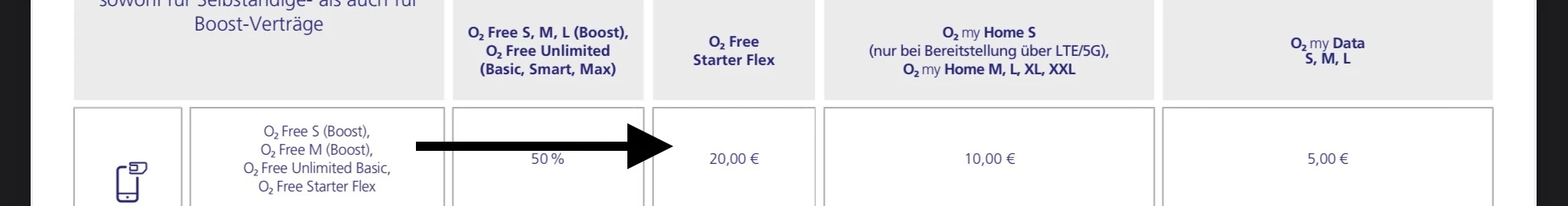 In der Liste in der die gültigen Hauptverträge für diese Aktion aufgeführt sind, ist der o2 Free M jedoch nicht aufgeführt. ? Nur die Boost Tarife.