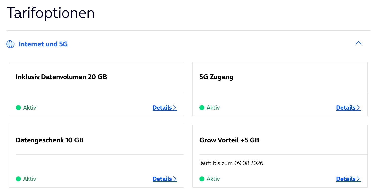Ich habe seit August ‘24 bei beiden dauerhaft zusätzlich 10 GB als Datengeschenk extra bekommen und irgendwann seit 2025 auch noch den Grow-Vorteil mit 5 GB eingebucht bekommen, also insgesamt 35 GB mtl. zur Verfügung. Seit diesem Monat habe ich nur noch 15 GB zur Verfügung, warum???