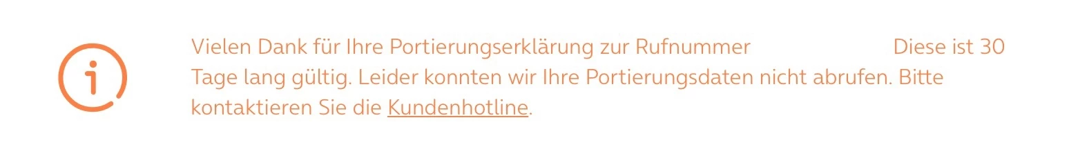 “Leider konnten wir Ihre Portierungsdaten nicht abrufen. Versuchen Sie es bitte zu einem späteren Zeitpunkt erneut”.
