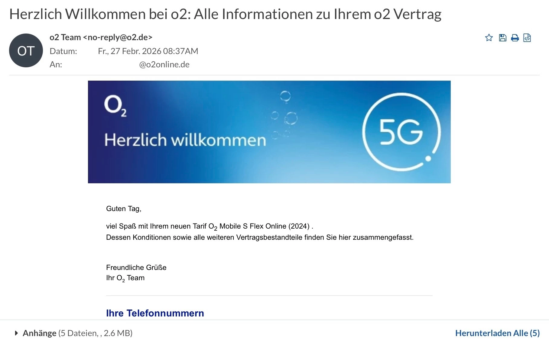 Nochmal, was steht in der Willkommen bei o2 E-Mail drin?