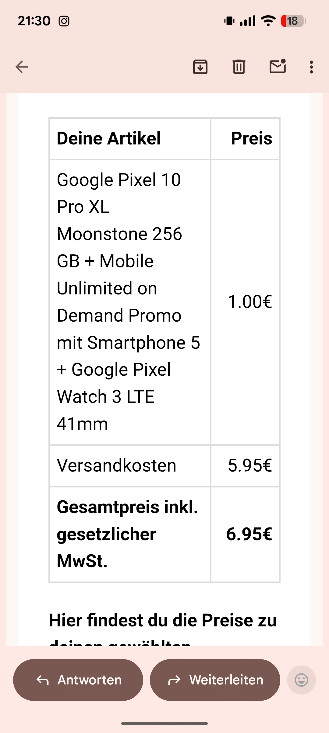 Ich habe gerade nochmals geschaut. In der Korrespondenz mit Mediamarkt wird der Angebotspreis genannt.