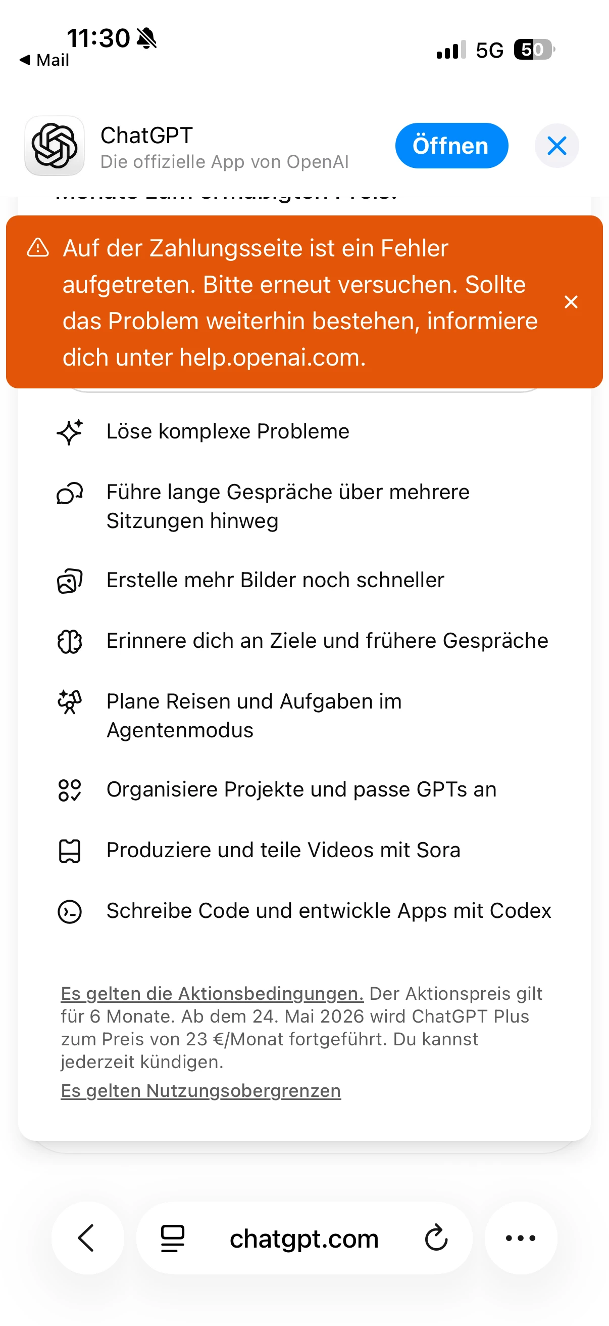 Probleme beim Einlösen vom gratis ChatGPT für 6Monate