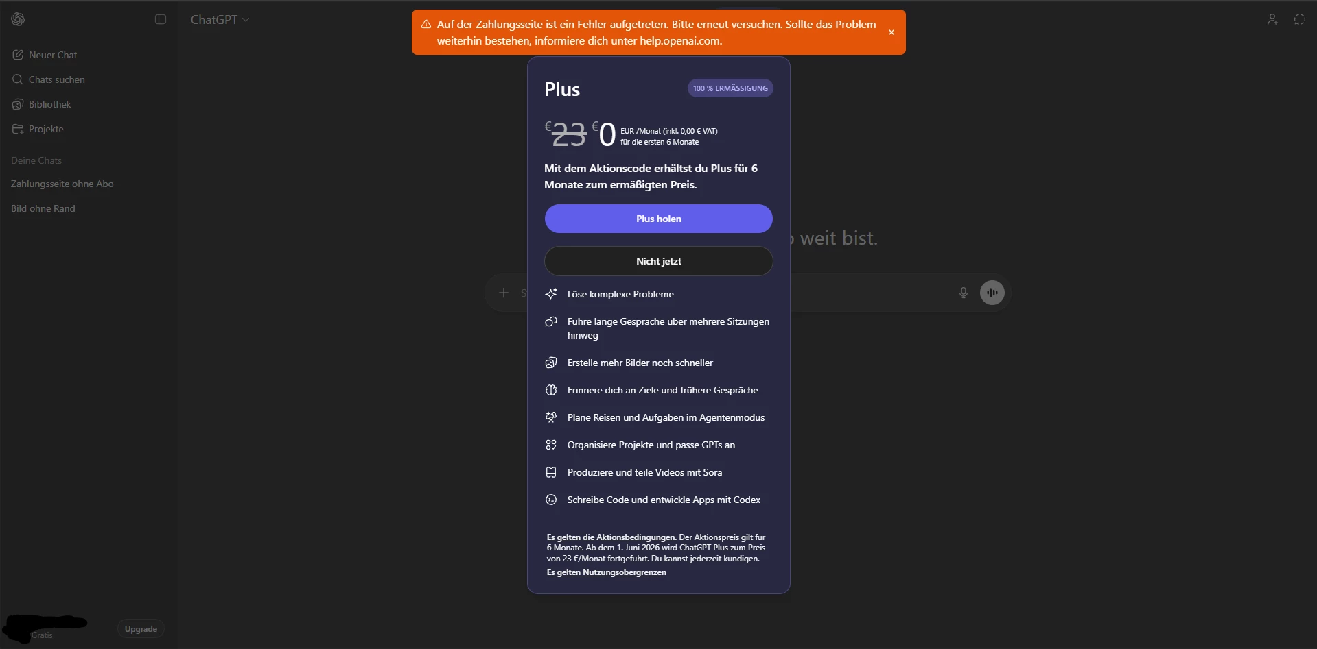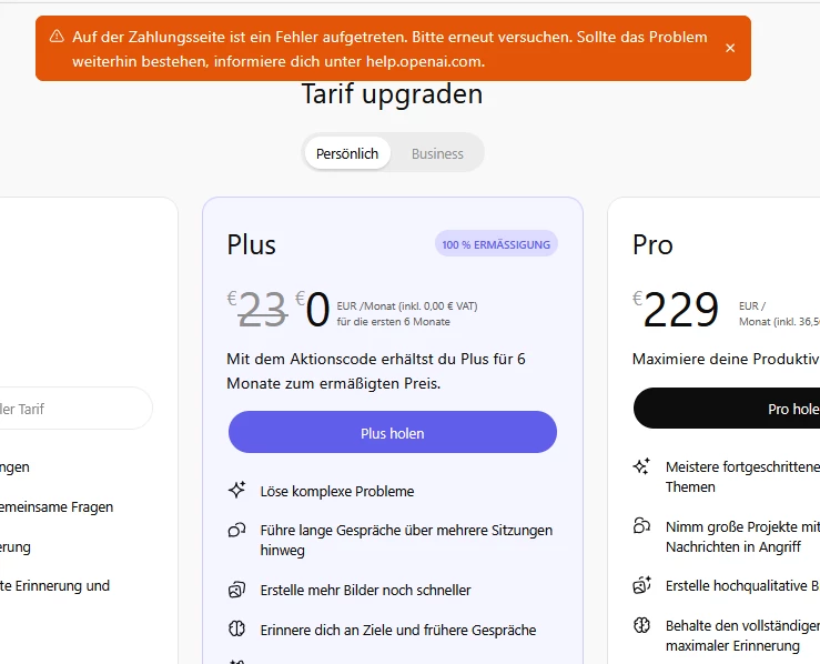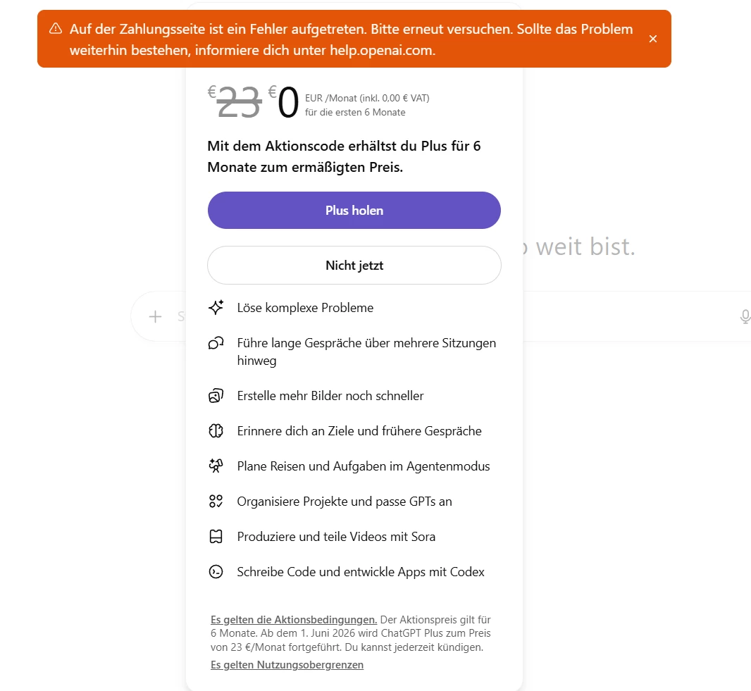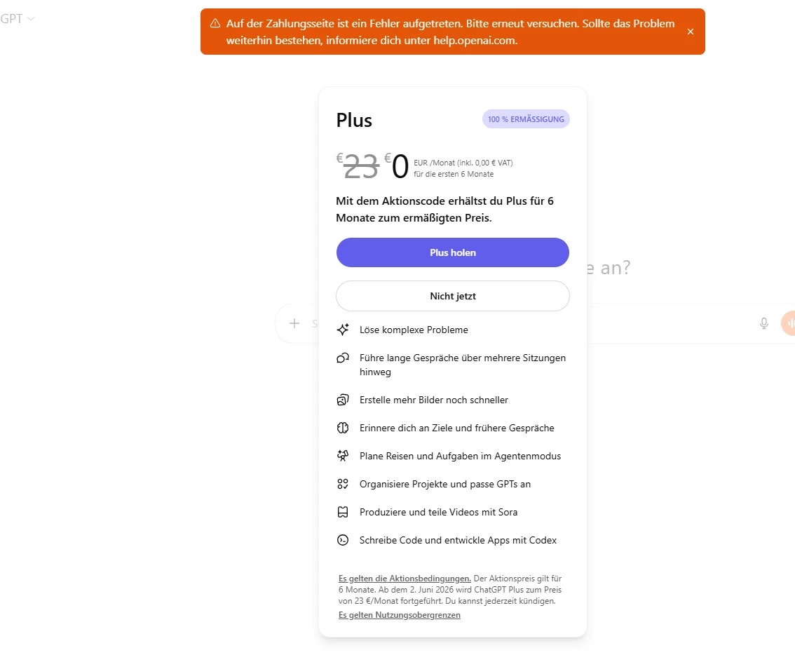 Probleme beim Einlösen vom gratis ChatGPT für 6Monate