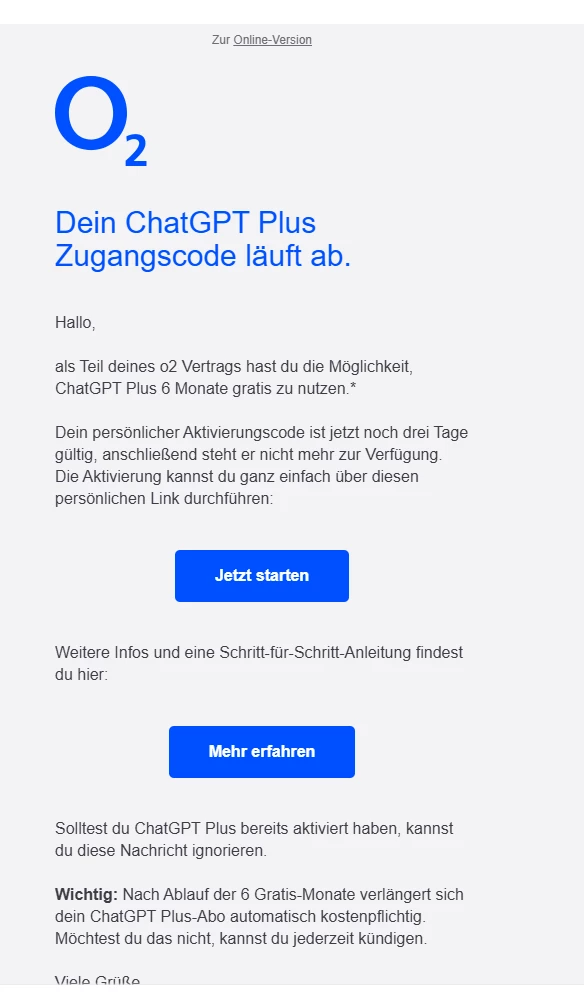 Was passiert wenn du auf die Email von o2 klickst? Landest du dann auf der Registrierungsseite von ChatGPT?
