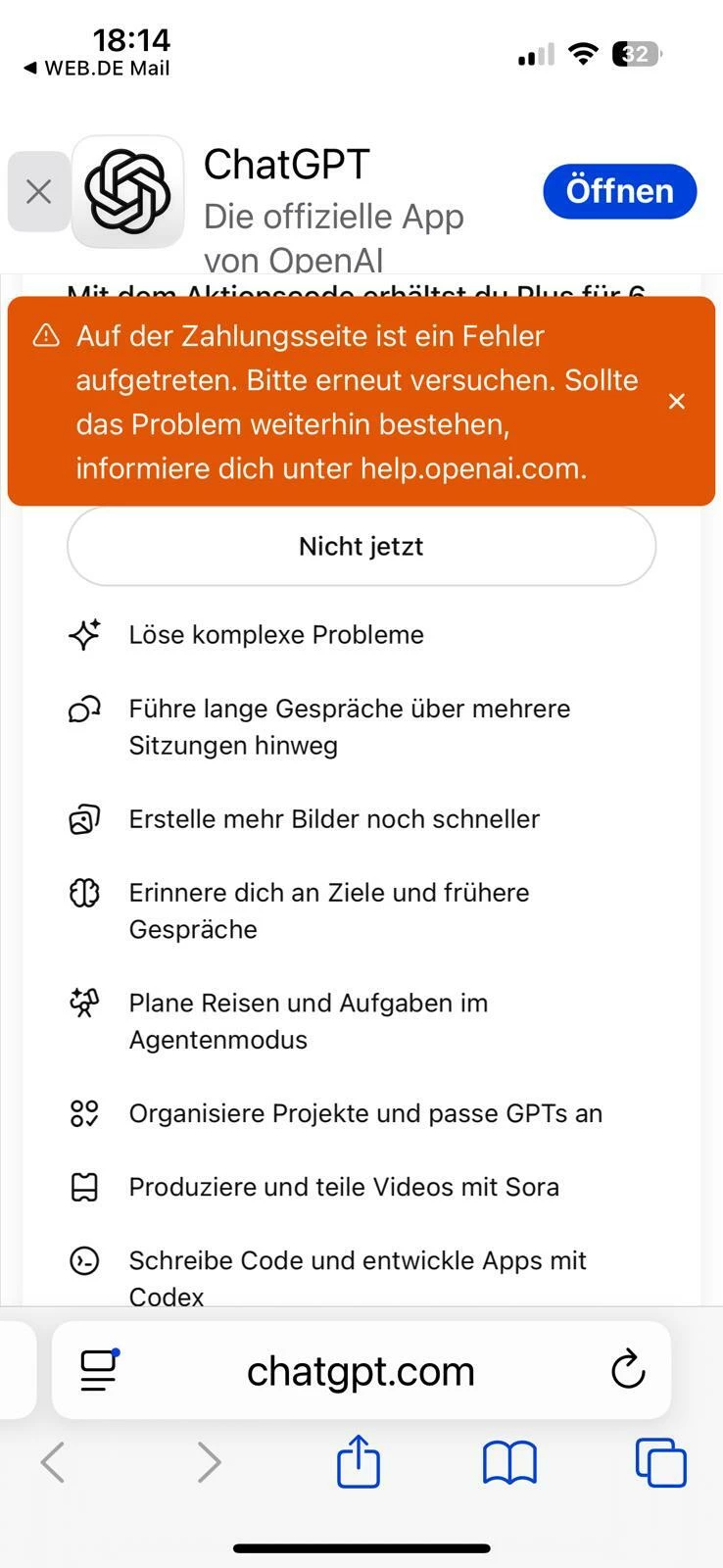 Hallo, habe meinen Vertrag verlängert und Chat GPT plus dazu bekommen. Der Link kam auch schon, habe es probiert auf Mobile und Desktop. Auch bei mir kommt die Fehlermeldung. Könnt ihr mir dabei helfen ?