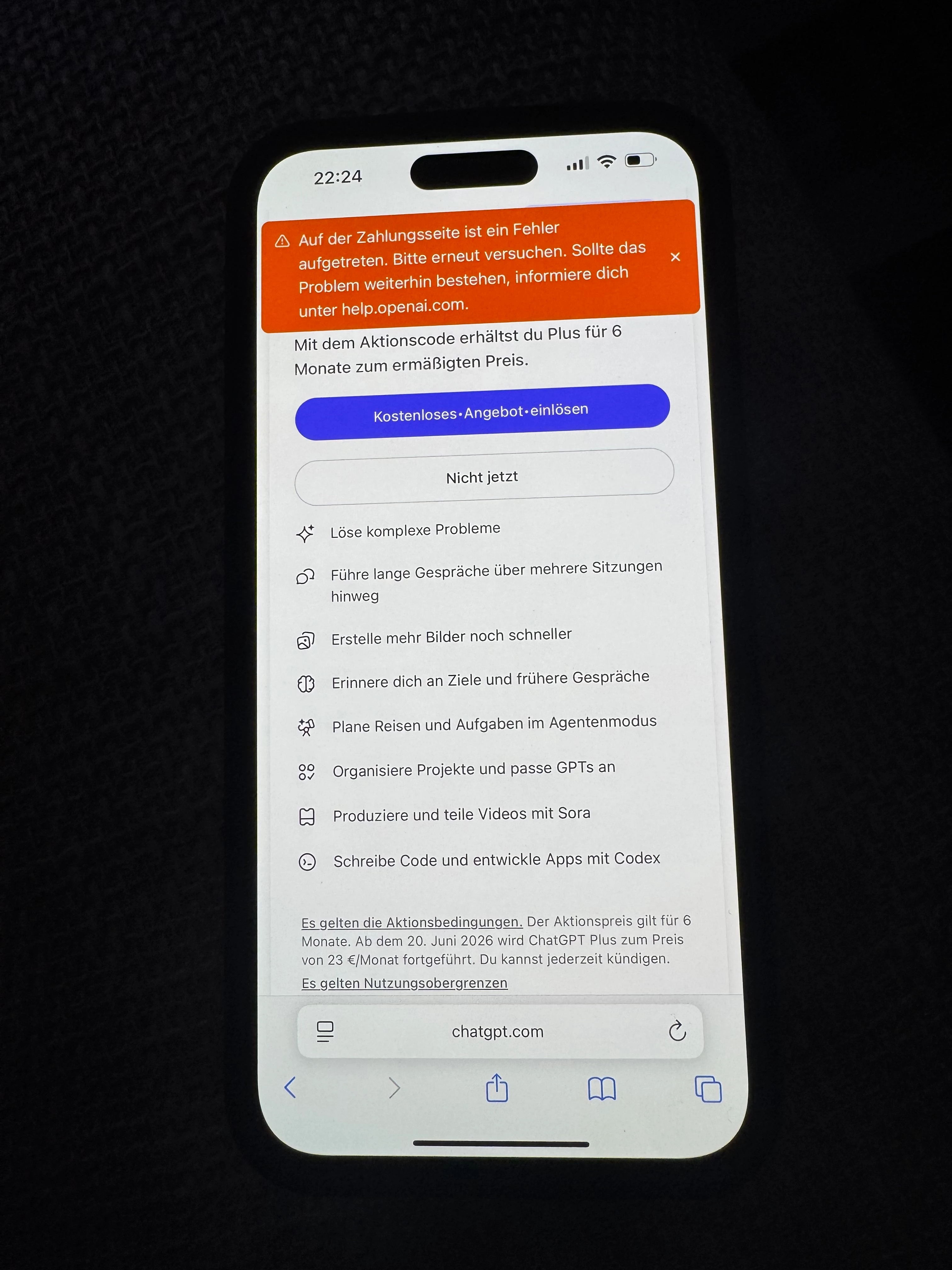 Probleme beim Einlösen vom gratis ChatGPT für 6Monate