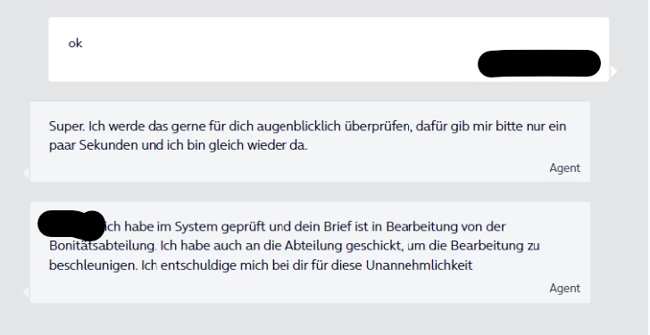 Ich verstehe deine Enttäuschung, dass zunächst ein Teil der geplanten Bestellungen durch unsere Bonitätsprüfung abgelehnt wurde und dann, dass nun die Antwort seitens der Kolleginnen und Kollegen nach den Ursachen so lange auf sich warten lässt.