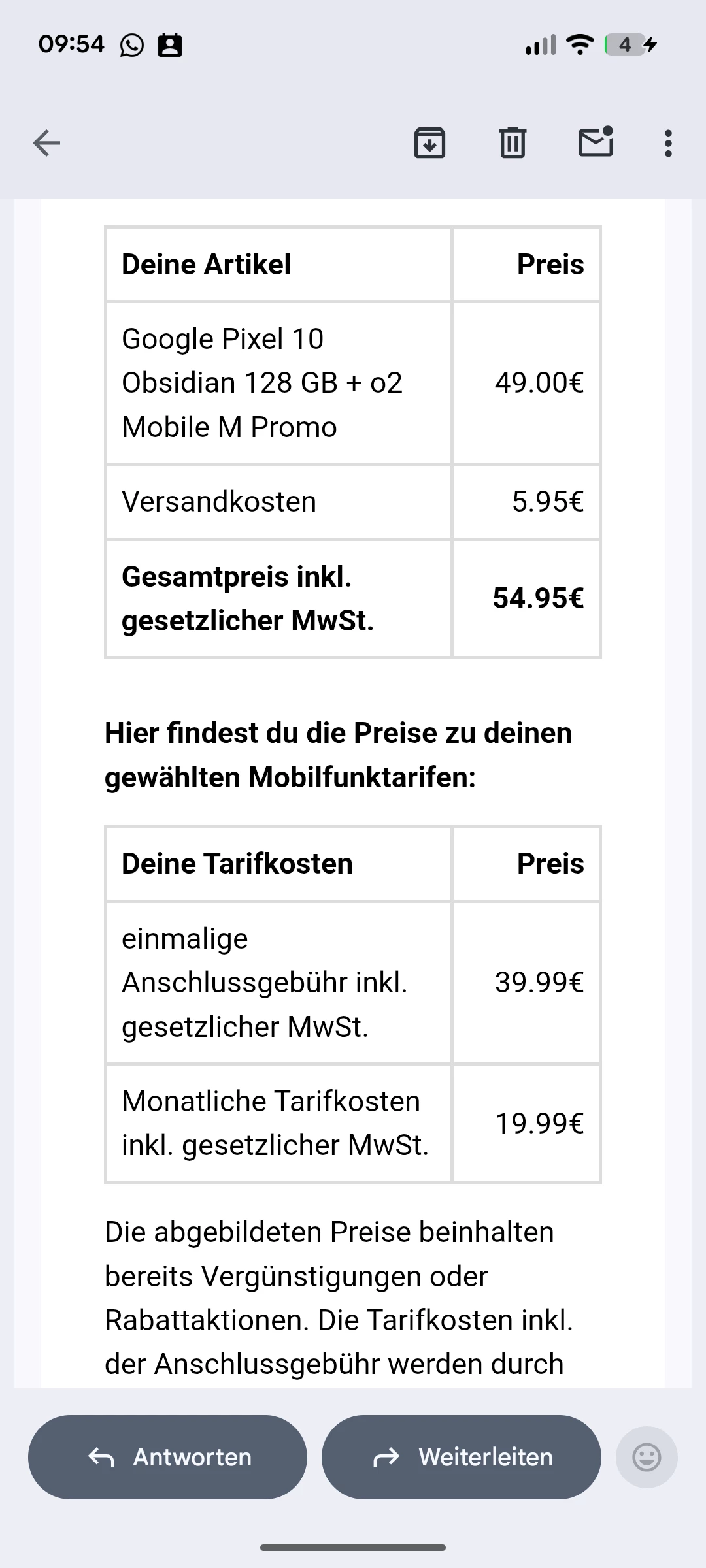 ich habe den Vertrag online abgeschlossen und habe dementsprechend eine Bestellbestätigung als E-Mail, in der die 19,99€ festgehalten sind.