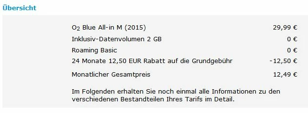 Stutzig wäre ich aber auch bei den Preisangaben geworden, denn 29,99€ Grundgebühr minus 12,50€ Rabatt ergeben keine 12,49€ monatlicher Gesamtpreis.