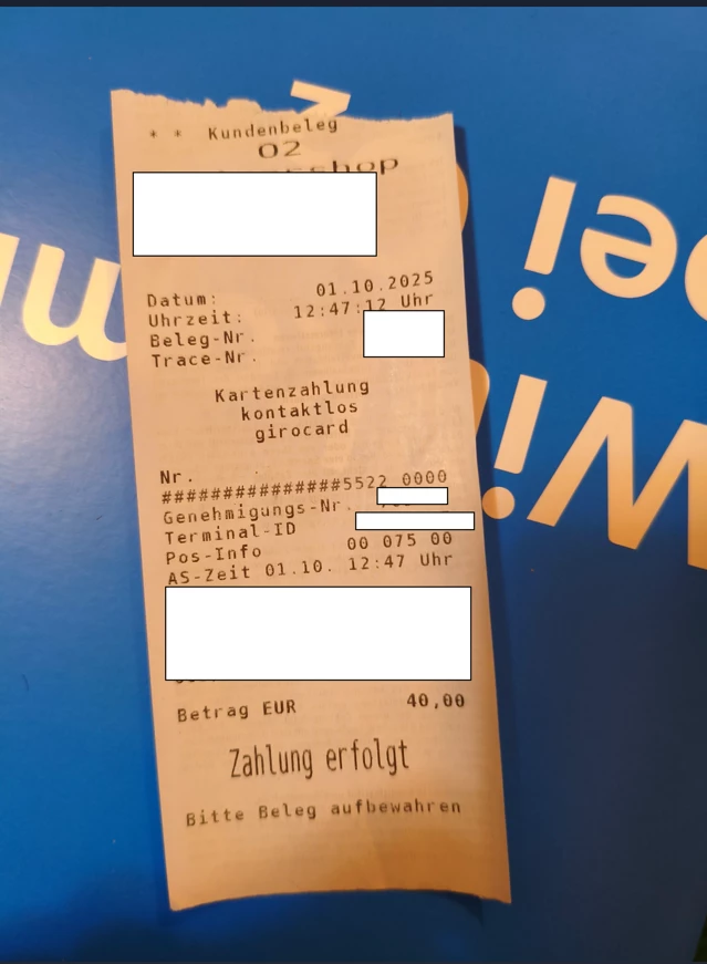 Hallo, ich habe mich am Anfang als O2-Kunde angemeldet. Mir wurde gesagt, dass ich, wenn ich jetzt 40 € bezahle, den nächsten Monat nicht mehr zahlen muss.