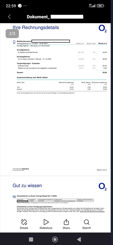 Da steht es schwarz auf weiß... myData Unlimited einmalig 39,99€ , Rabatt 39,99€ ... hätte nicht berechnet werden dürfen.