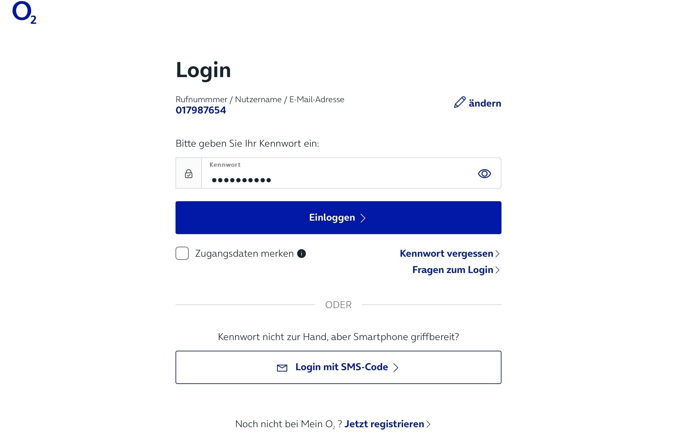 Ja ,,Sie sind bereits für "mein O2" registriert,, --sagt es mir