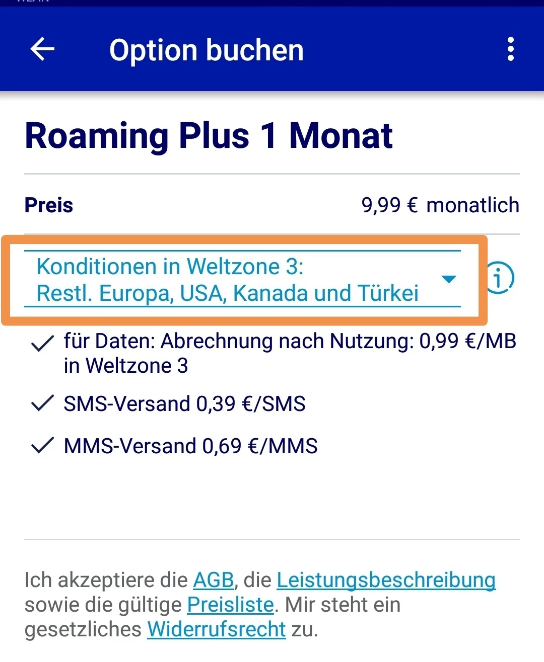 habe Roaming Plus 1 Monat (3GB) gestern gebucht und das ist seit heute aktiv. Soweit alles gut. Der Grund dafür ist, dass mein Sohn, der diesen Vertrag nutzt, seit gestern für 1 Woche in Kanada ist. Unter „Tarife“ sehe ich auch die Aktivierung in der App. Unter Details sehe ich die 3GB allerdings nur bei Zone 2. Unter Zone 3 steht dort nur, dass 0,99€/MB abgerechnet werden, aber nicht erst nach Verbrauch der 3 GB. Ist das so? Dann wäre es eine Katastrophe und irreführende Beschreibung dieser Option. Gilt die Option Roaming Plus 1 Monat für 9,99€ und 3GB auch für Kanada?