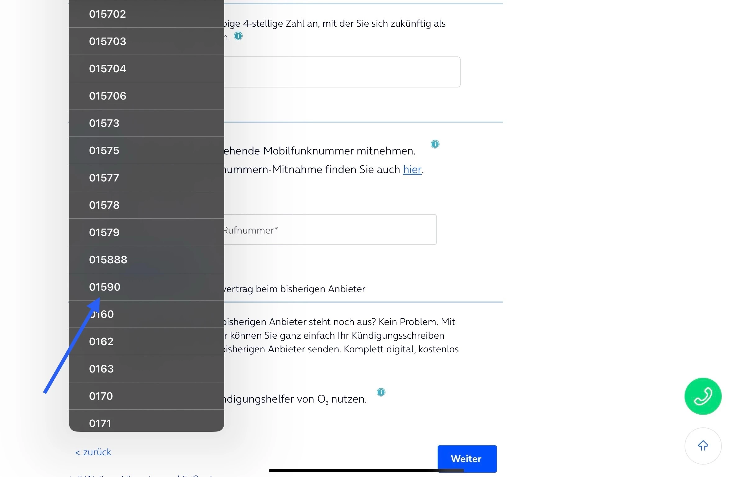 ich hab bei meiner nummer die ich gerne übernehmen möchte0159 am anfang, das ist aber bei der vorwahl der auszuwählenden rufnummern nicht ausgewählbar.