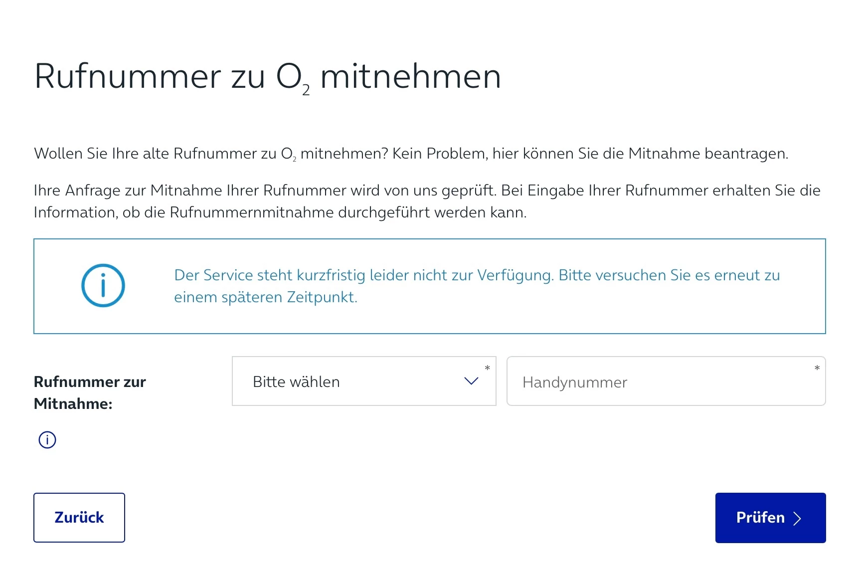 ich habe einen neuen Vertrag für meinen Mutter abgeschlossen Beginn 18.03. und diese will ihre Nummer von WinSim (Kündigungsdatum 31.03.) übernehmen. Dort habe ich die Rufnummer freigeschaltet als OptIn. Was muss ich nun tun?  im O2 Portal des neuen Vertrags heißt es “Der Service steht kurzfristig leider nicht zur Verfügung. Bitte versuchen Sie es erneut zu einem späteren Zeitpunkt.”