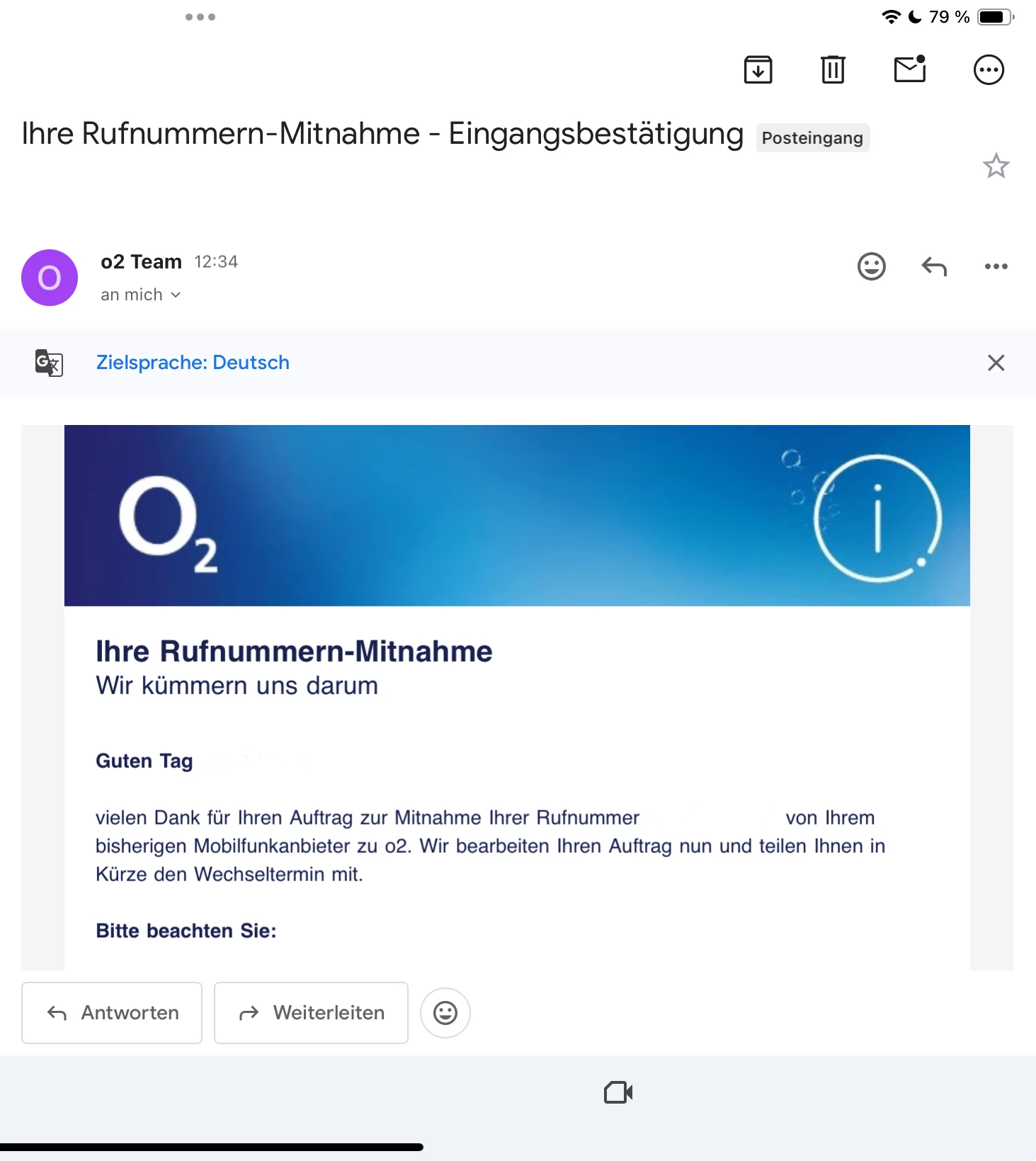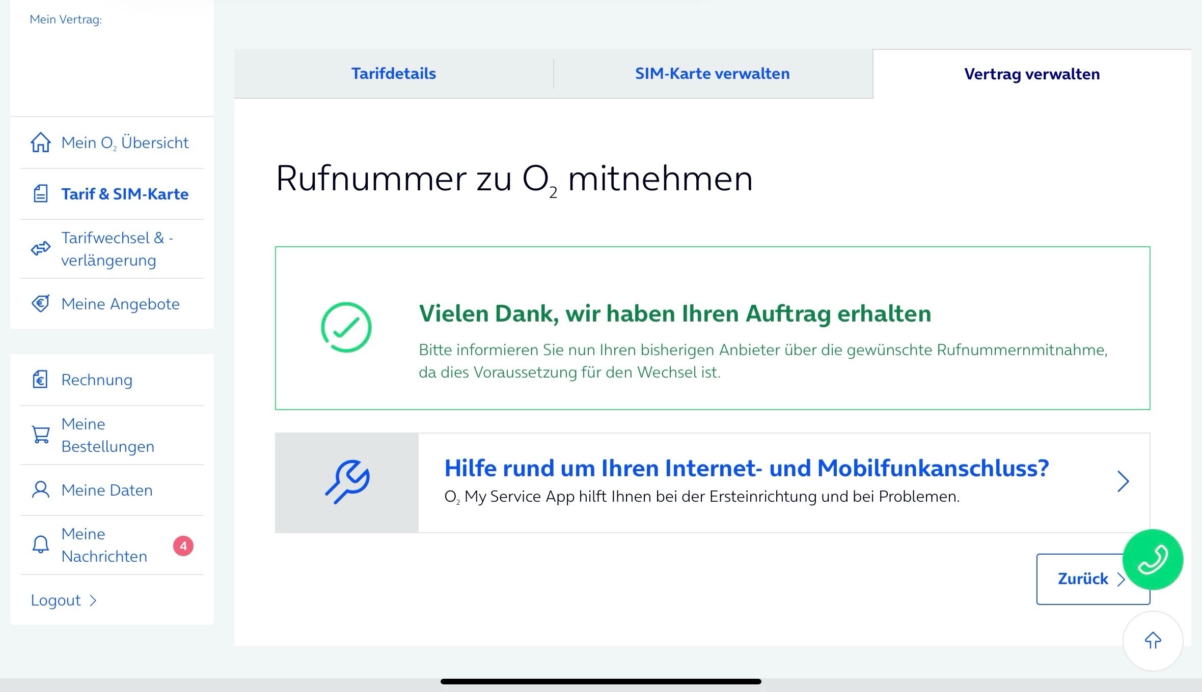 Es freut mich, dass du inzwischen schon eine Rückmeldung zu deinem Auftrag zur Rufnummernmitnahme erhalten hast.