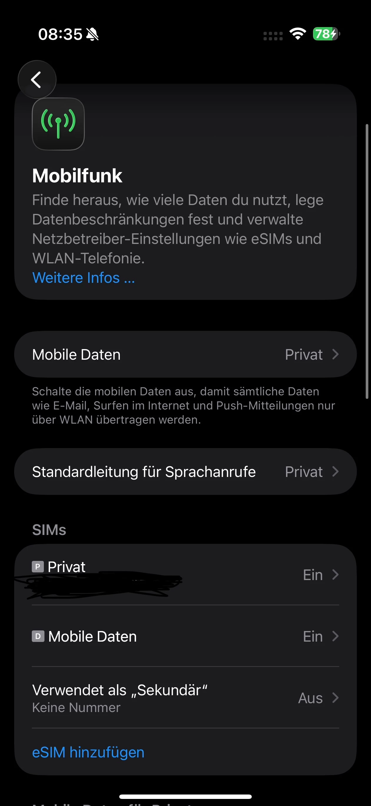 Könntest du mal bei Privat und Mobile Daten eine manuelle Netzwahl vornehmen?