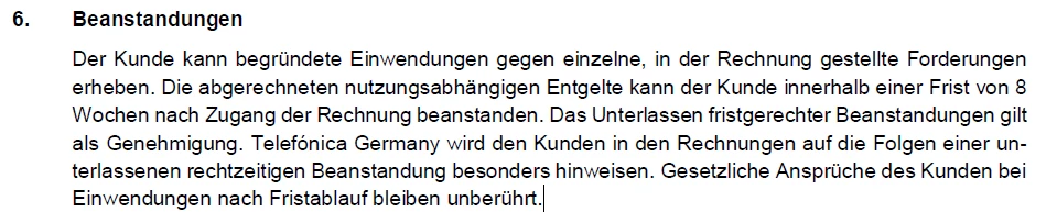 Rechnungen sind innerhalb von 8 Wochen zu reklamiere,