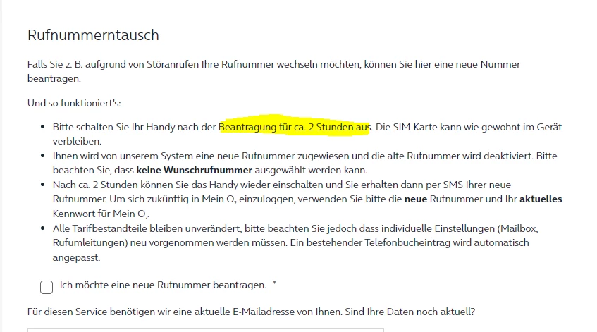 Im Normalfall erhält man auch eine neue Rufnummer innerhalb von 2 Stunden aber was ist bei o2 schon noch normal :-) sind wir mal ehrlich es funktioniert doch fast nichts mehr.