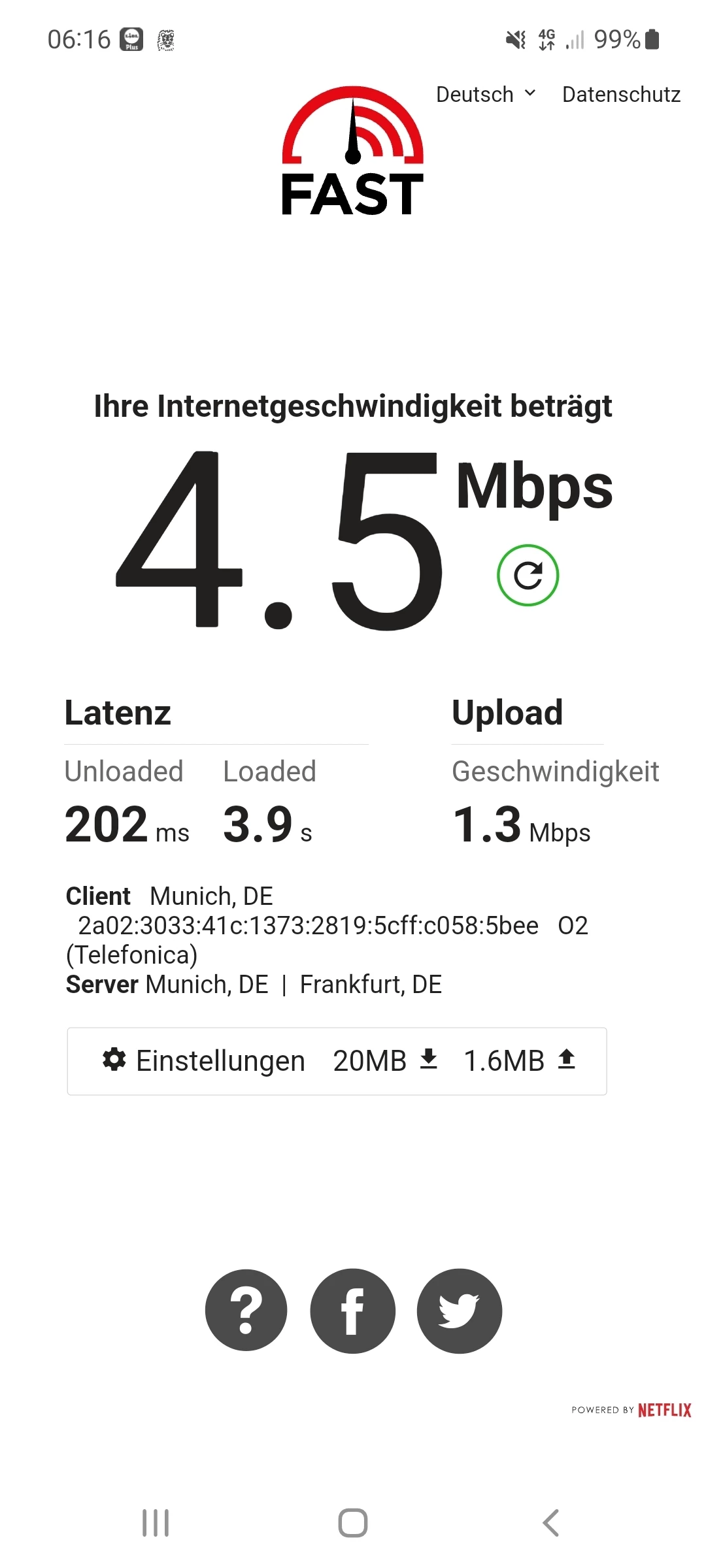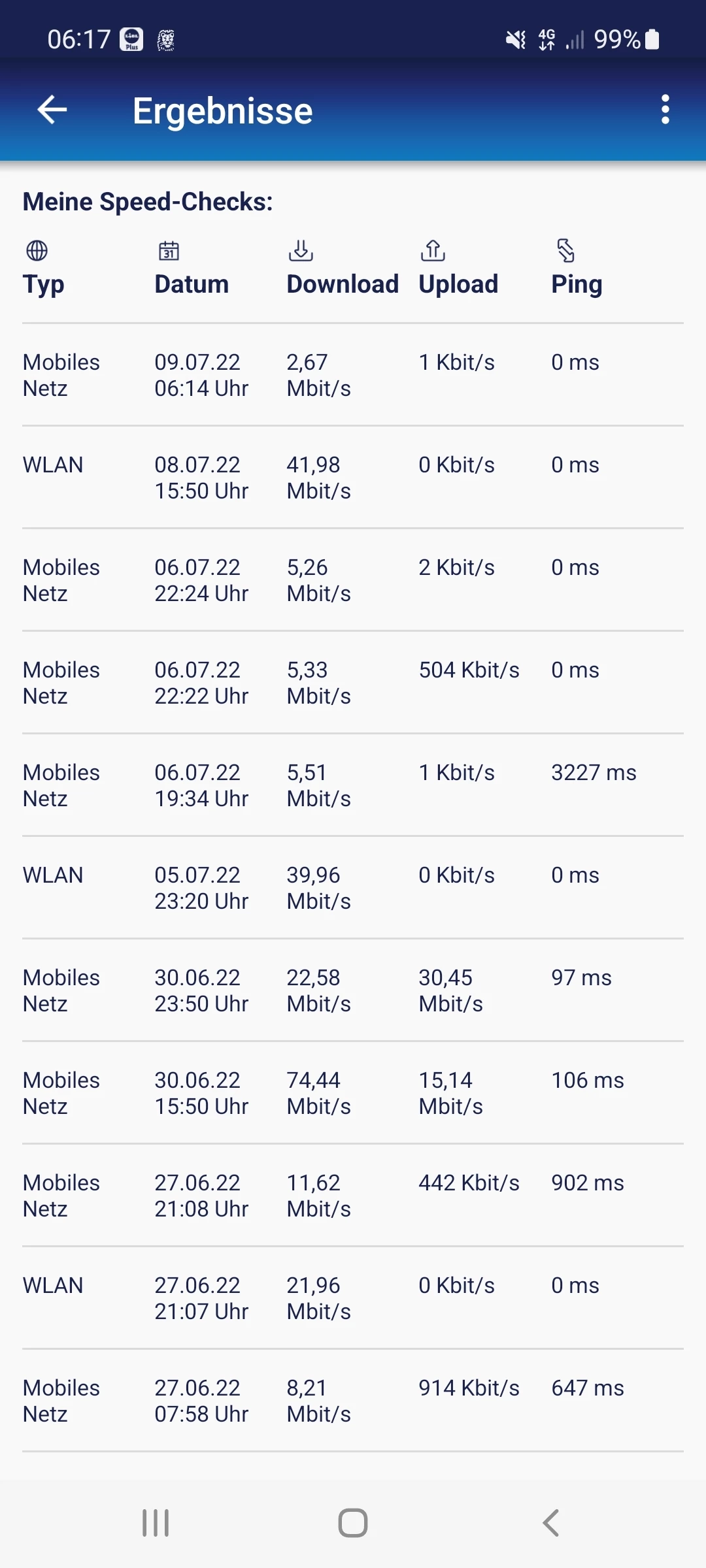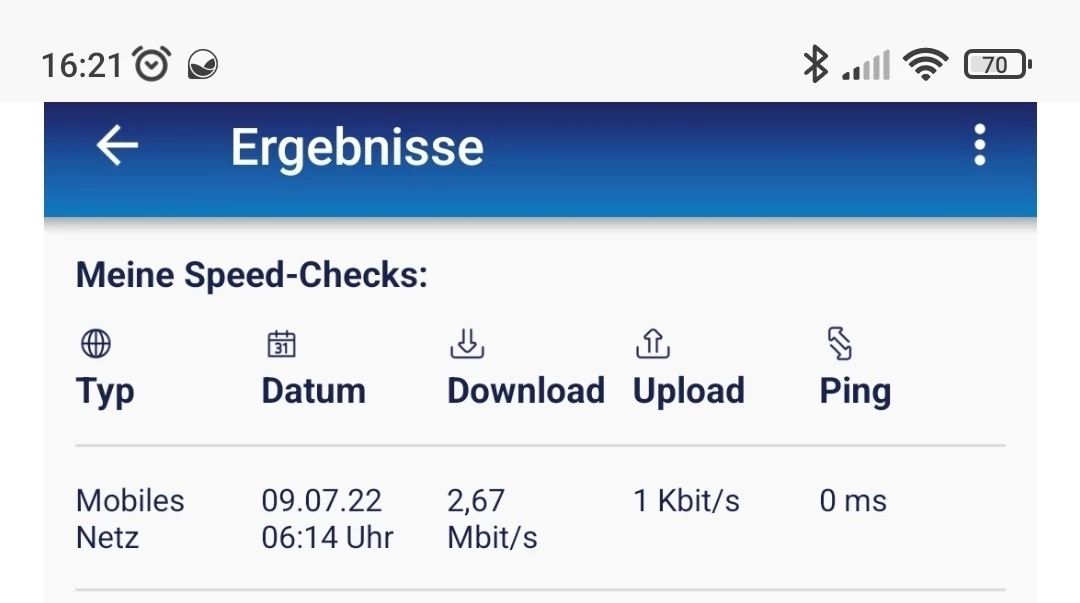 @DaniausW wenn möglich auch mal den Cellmapper installieren und schauen ob jemand bei Dir schon einen Trail gemacht hat. Leider kann man nicht sagen wie alt die Messpunkte sind (es kann aber muß sich nicht mittlerweile verbessert haben). Die Netzabdeckungskarte hattest Du ja nschon vor Vertragsabschluß konsultiert. Eine hohe Feldstärkenanzeige bedeutet leider nicht automatisch auch eine hohe Datenübertragungsrate. Darüberhinaus kommen natürlich Einflussgrößen wie temporäre Überlast oder technischer Defekt auf Senderseite zum tragen.