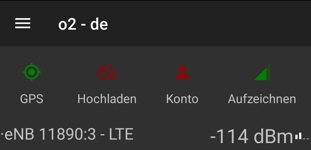 Der LTE Empfang ist mit -114 dBm schon recht nah an der Empfangsgrenze. Vermutlich ist der Screenshot im Gebäude aufgenommen worden, und das Gebäude schirmt zusätzlich stark ab.