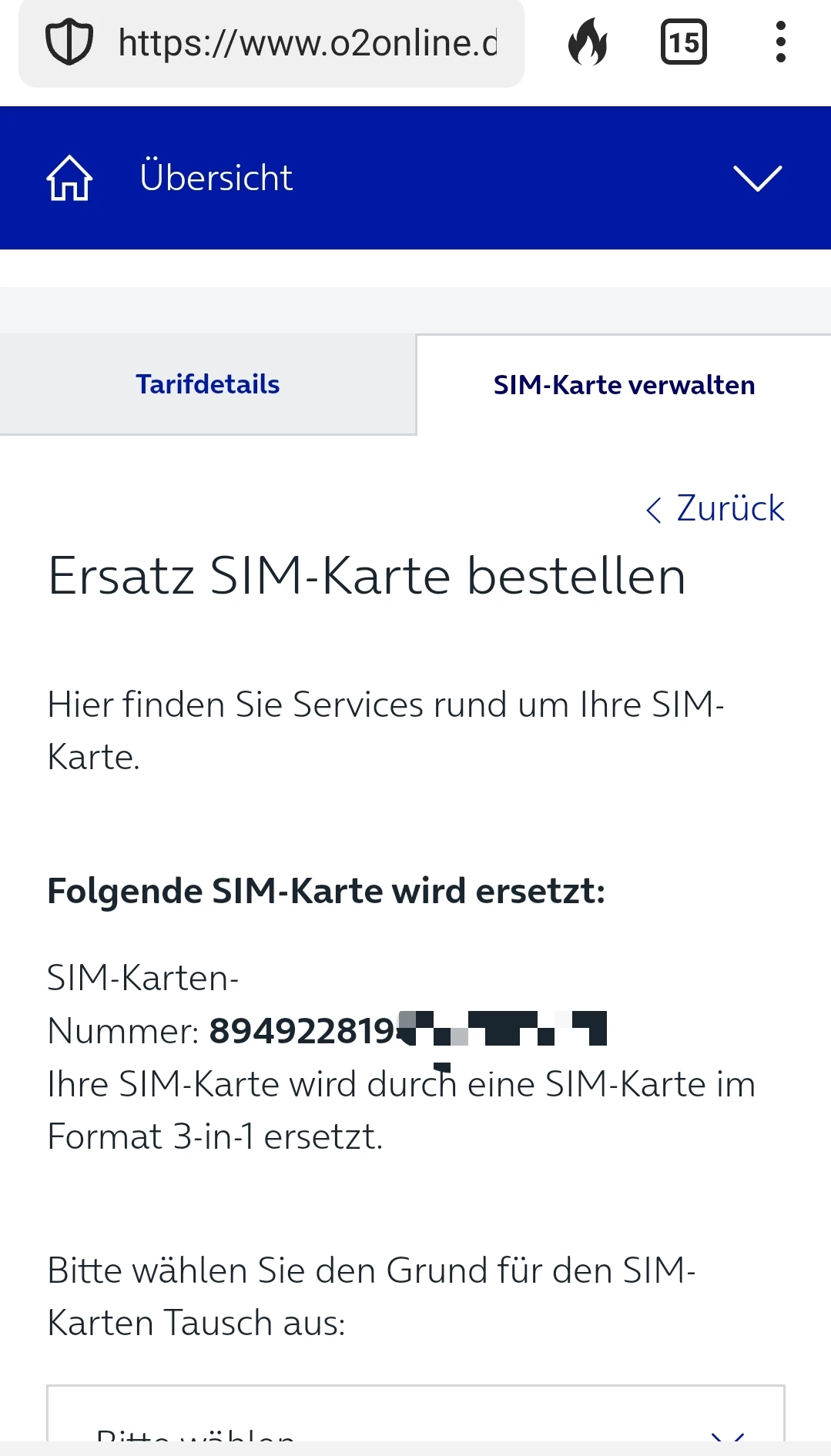 In "mein o2" ist die SIM-Kartennummer mit einen Trick einsehbar: