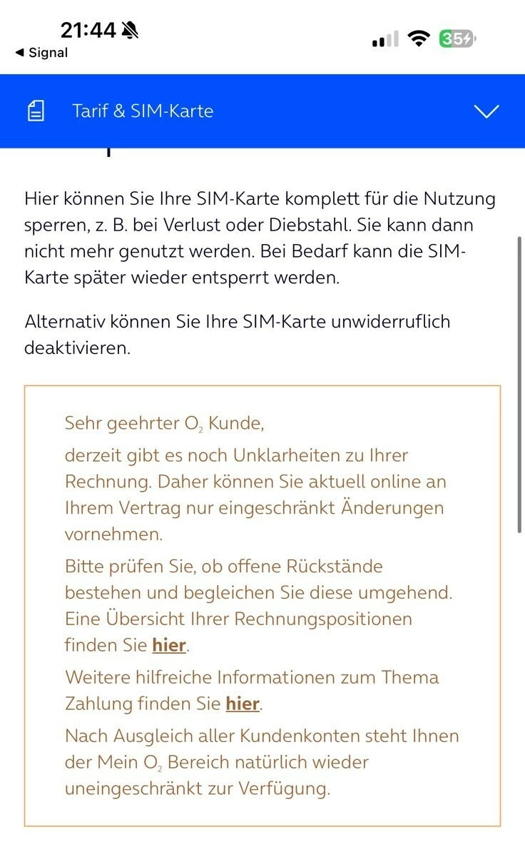 Ganz ehrlich – wie bitte kann es sein, dass man eine SIM-Karte nicht sofort sperren kann, nur weil noch eine Rechnung offen ist? Das ist doch komplett absurd. Gerade zur Schadensbegrenzung muss eine Sperrung jederzeit möglich sein.