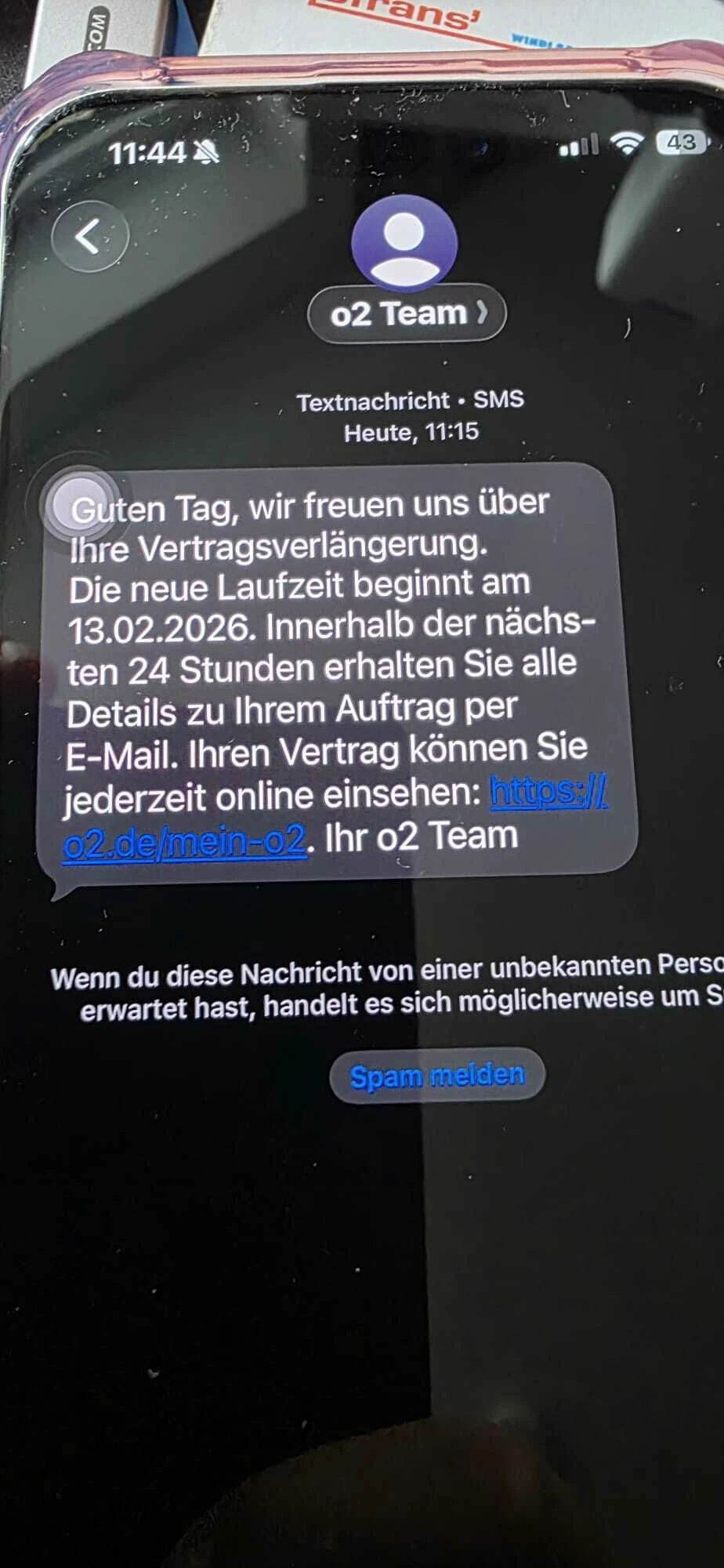 SMS Angebliche Vertragsverlängerung