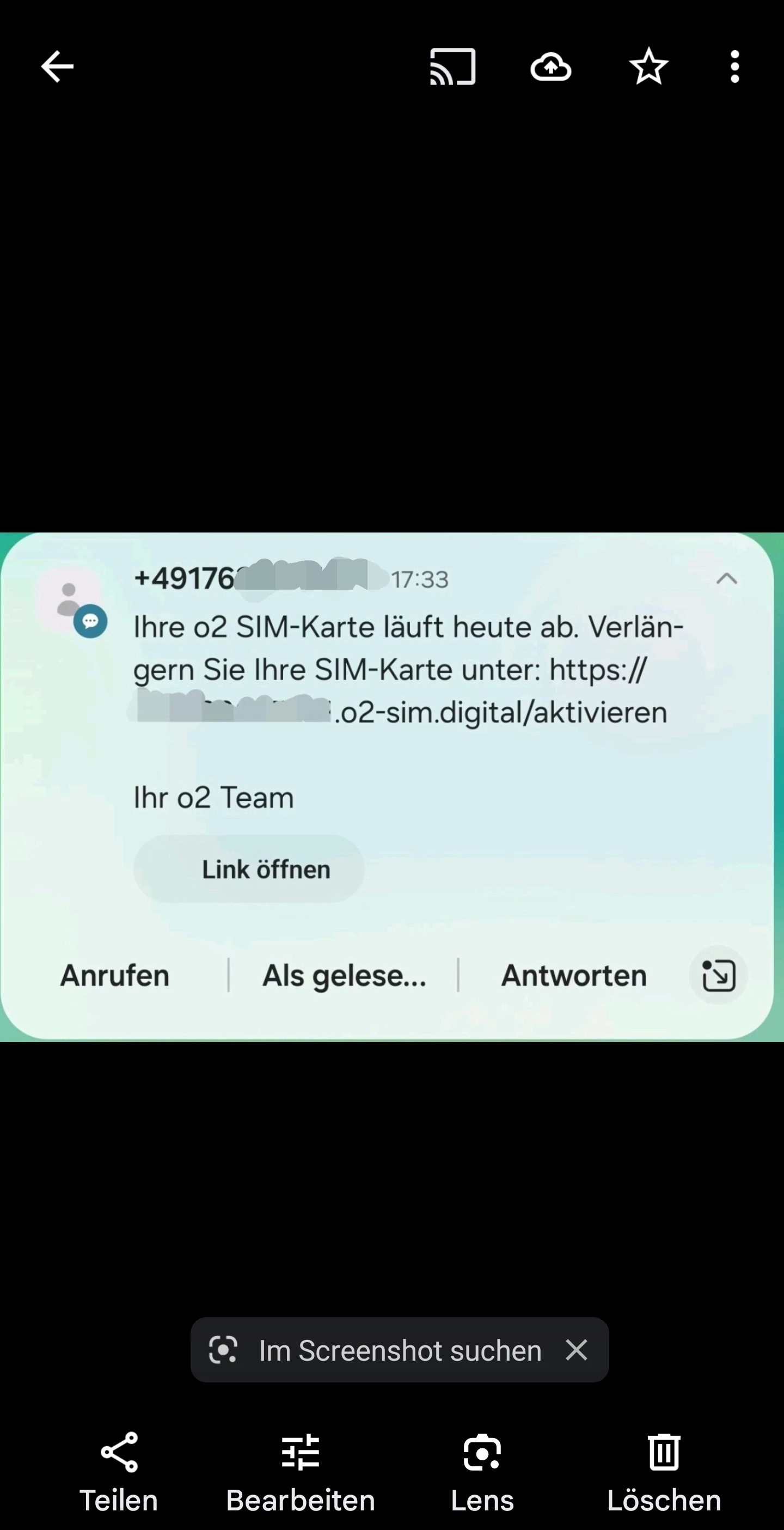 Mehr kannst du da leider nicht tun. Wir haben zu dem Thema noch einen Artikel, da kannst du dich zusätzlich informieren: Achtung: Warnung vor kriminellen Phishing-SMS mit irreführendem Absender "o2 Team" | O₂ Community (o2online.de)