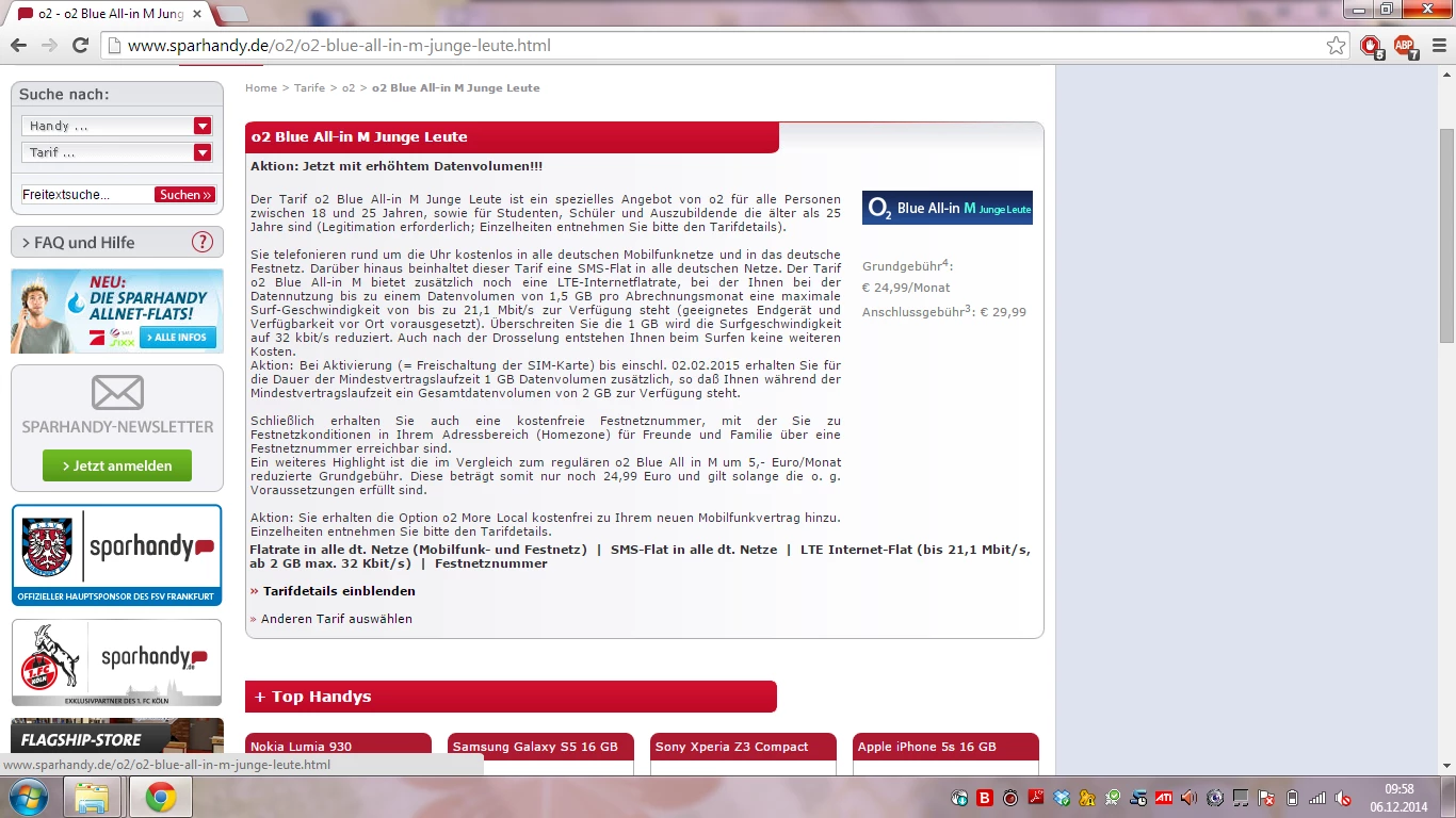 Ich hatte meinen o2 Blue All-In-M Junge Leute Tarif am 02.12.2014 über Sparhandy abgeschlossen.