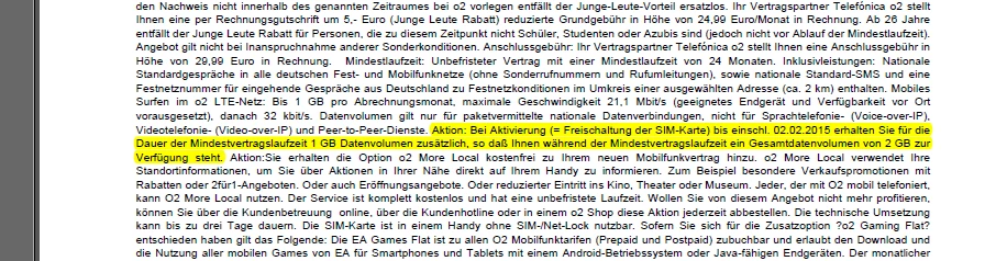 ich habe über Sparhandy einen o2 Blue All-in M Junge Leute-Vertrag abgeschlossen. Und zwar mit Aktionsangebot bei dem mir für 24 Monate insgesamt 2 GB LTE Datenvolumen zustehen sollten.