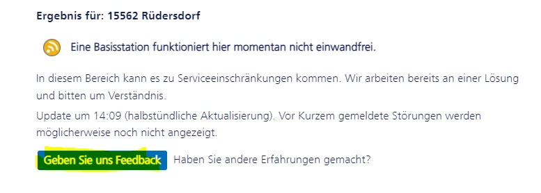 Wenn es um Mobilfunk geht, sollte die Störung über den Live Check / “Geben Sie uns Feedback” erfolgen.