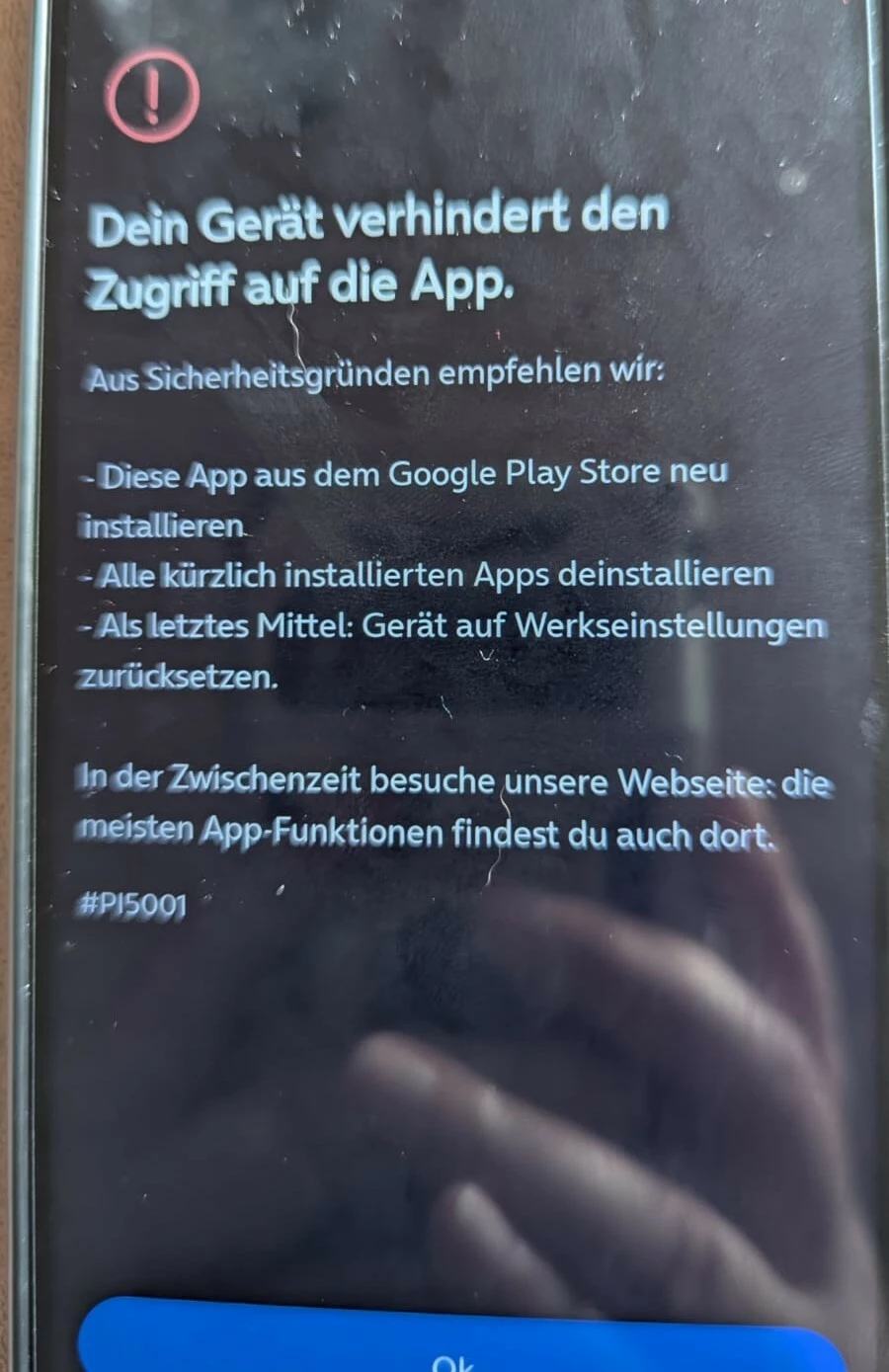 Fehler scheint im Moment auf dem einen oder anderen Gerät aufzukreuzen weil die App “denkt” das Root oder sonstiges vorhanden ist.