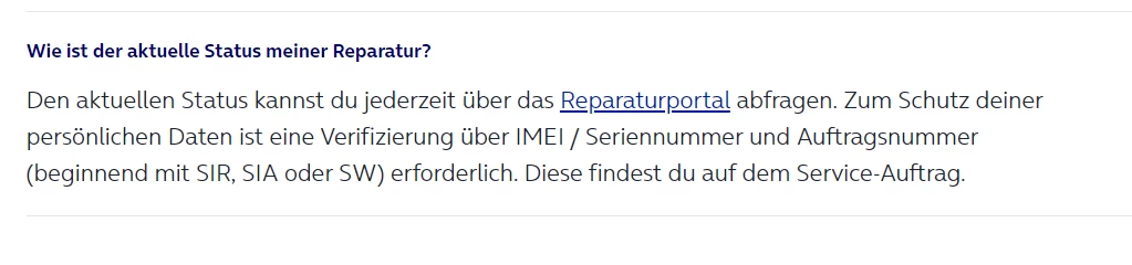 Und auf der Reperaturportal wo ich die 2 nr eingebe komme ich nur bis " eingegangen am....."