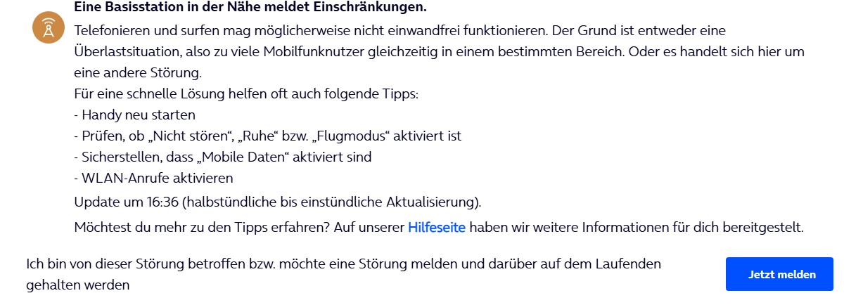 In der Tat ist eine Überlastung angezeigt, für unser LTE Netz.