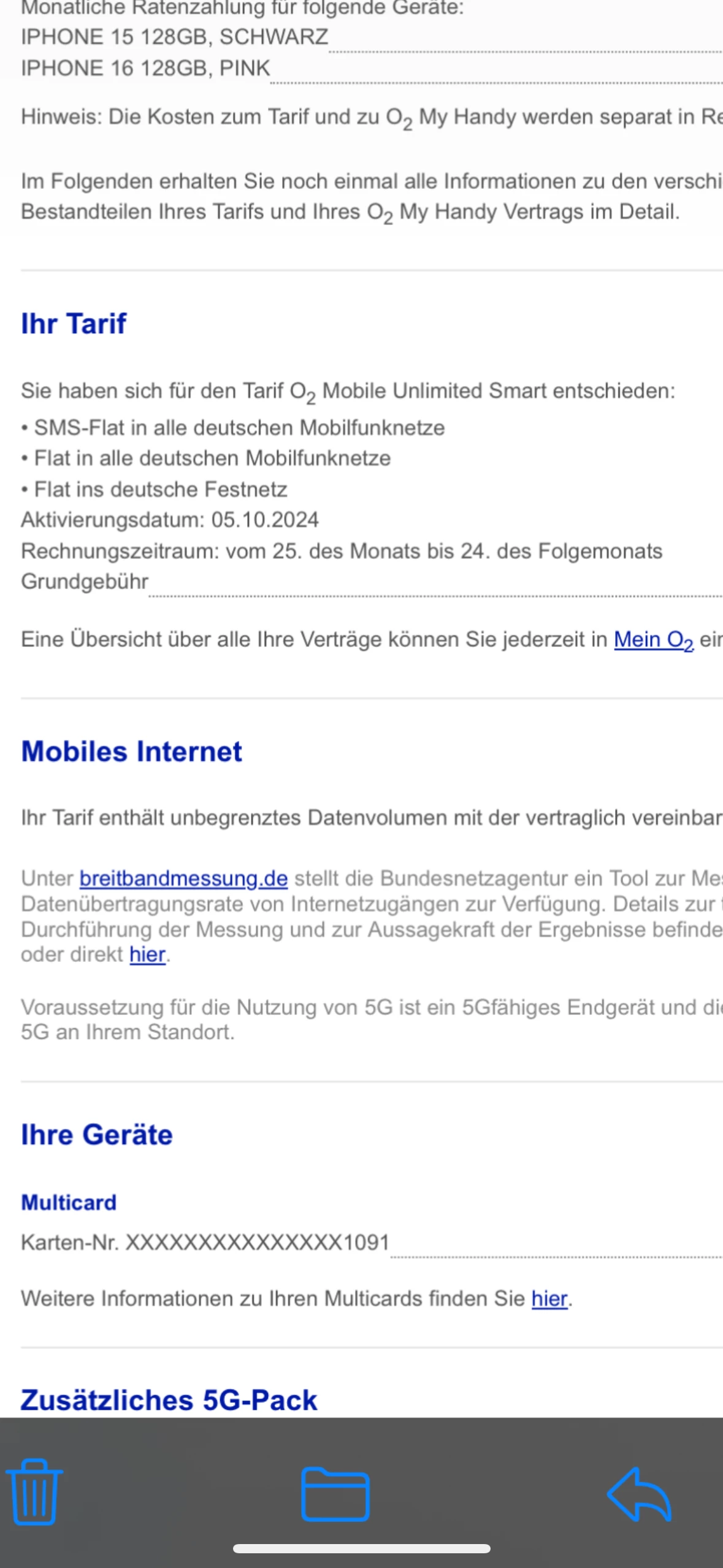 @Bollermann ja an sich schon aber laut email das mein Widerruf erfolgreich war ist das Aktivierungsdatum der 05.10.2024 mit meinem alten Tarif. Ich habe doch die Verlängerung widerrufen. Ich hätte im alten Tarif sein müssen mit der bestehenden Vertragslaufzeit. Stattdessen hat sich nur der Tarif in den vorherigen geändert und die Vertragslaufzeit ist die selbe wie die von der ehemaligen Vertragsverlängerung. Das ist doch schon fast Betrug. In der email hat man es schwarz auf weiß das ich lediglich wieder im alten Tarif bin aber die Vertragslaufzeit hat sich verlängert trotz Widerruf. Ich hoffe hier kann ein Mitarbeiter für Klartext sorgen sonst war es das letzte mal das ich o2 Kunde war