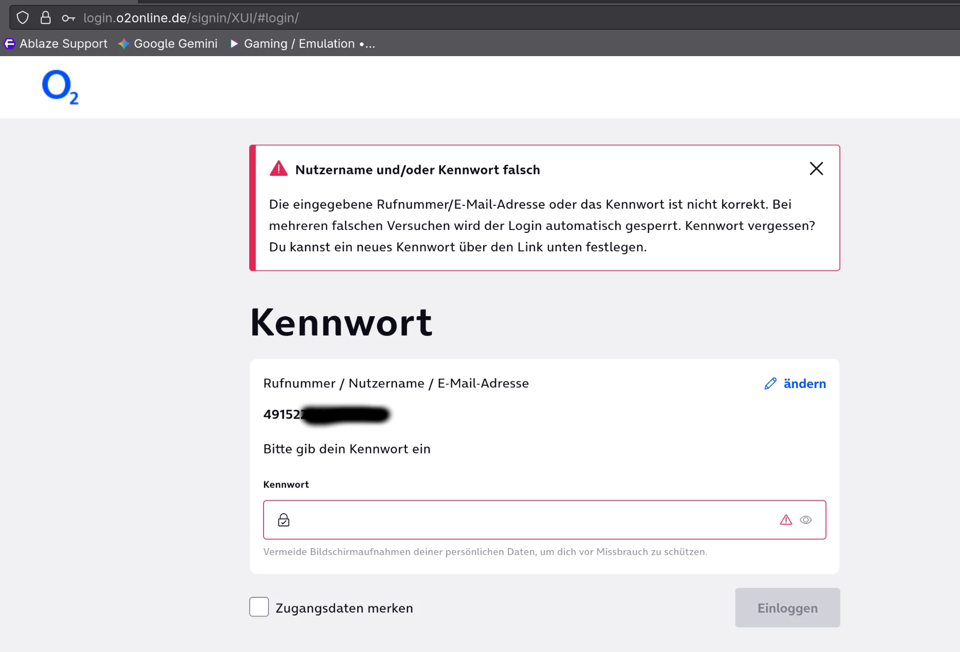 Wie geschrieben, die portierte Rufnummer funktioniert nicht. Da kommt “Bitte überprüfe deine Angaben noch einmal”, wenn ich versuche das Passwort zurückzusetzen. Und mein Passwort funktioniert beim Login mit der Nummer auch nicht