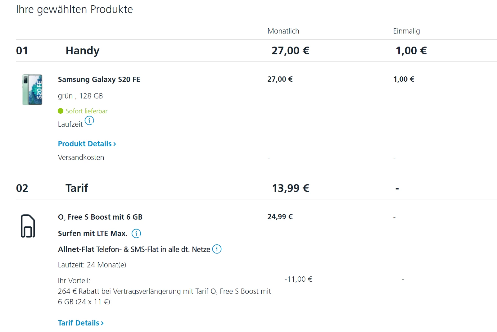 Welchen Tarif und welches Handy (Modell, Farbe, Speicher) möchtest du denn genau?