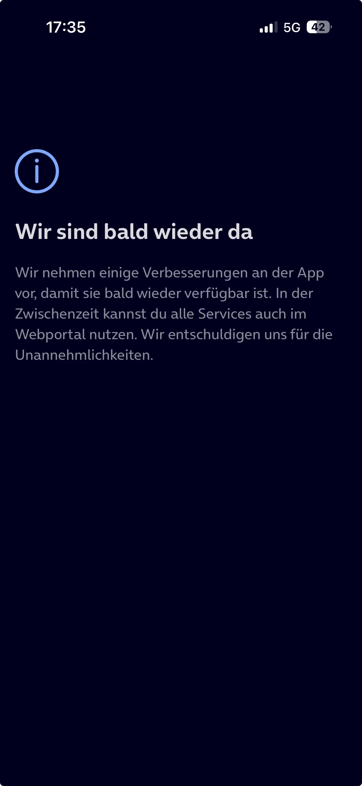 @o2_Antje Die Meldung “Wir sind bald wieder da.” ist seit gestern Abend wieder weg.