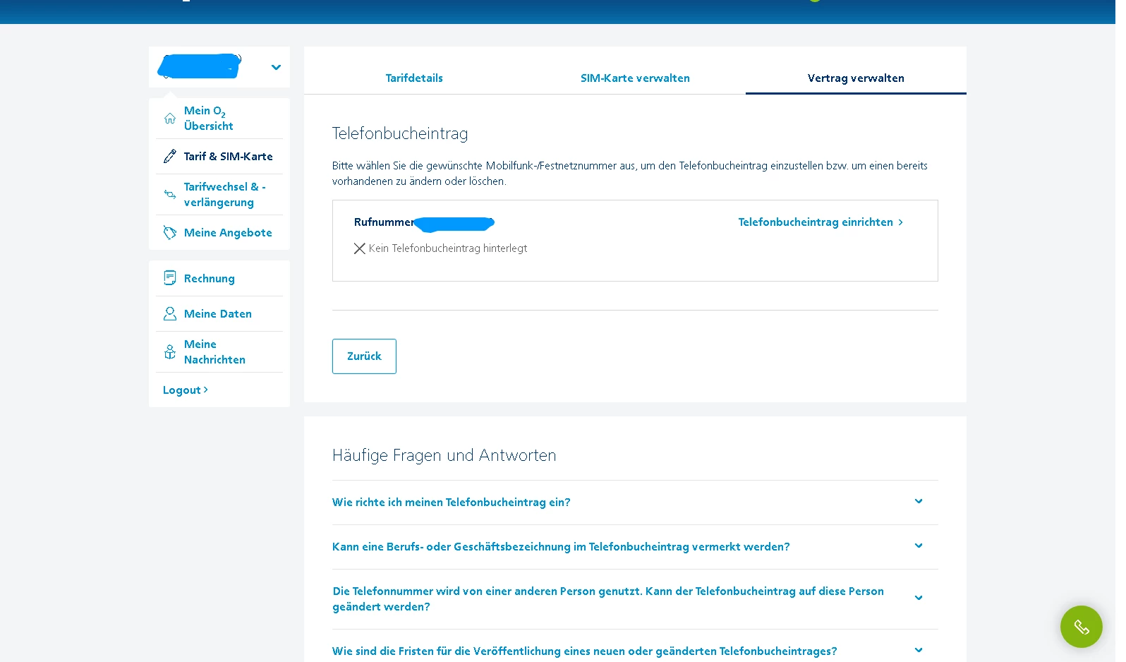 Eingetragene vorhandene Telefonbucheinträge können wir ganz easy selbst verwalten und löschen in Mein O₂ zB Vertrag verwalten. Mein O₂