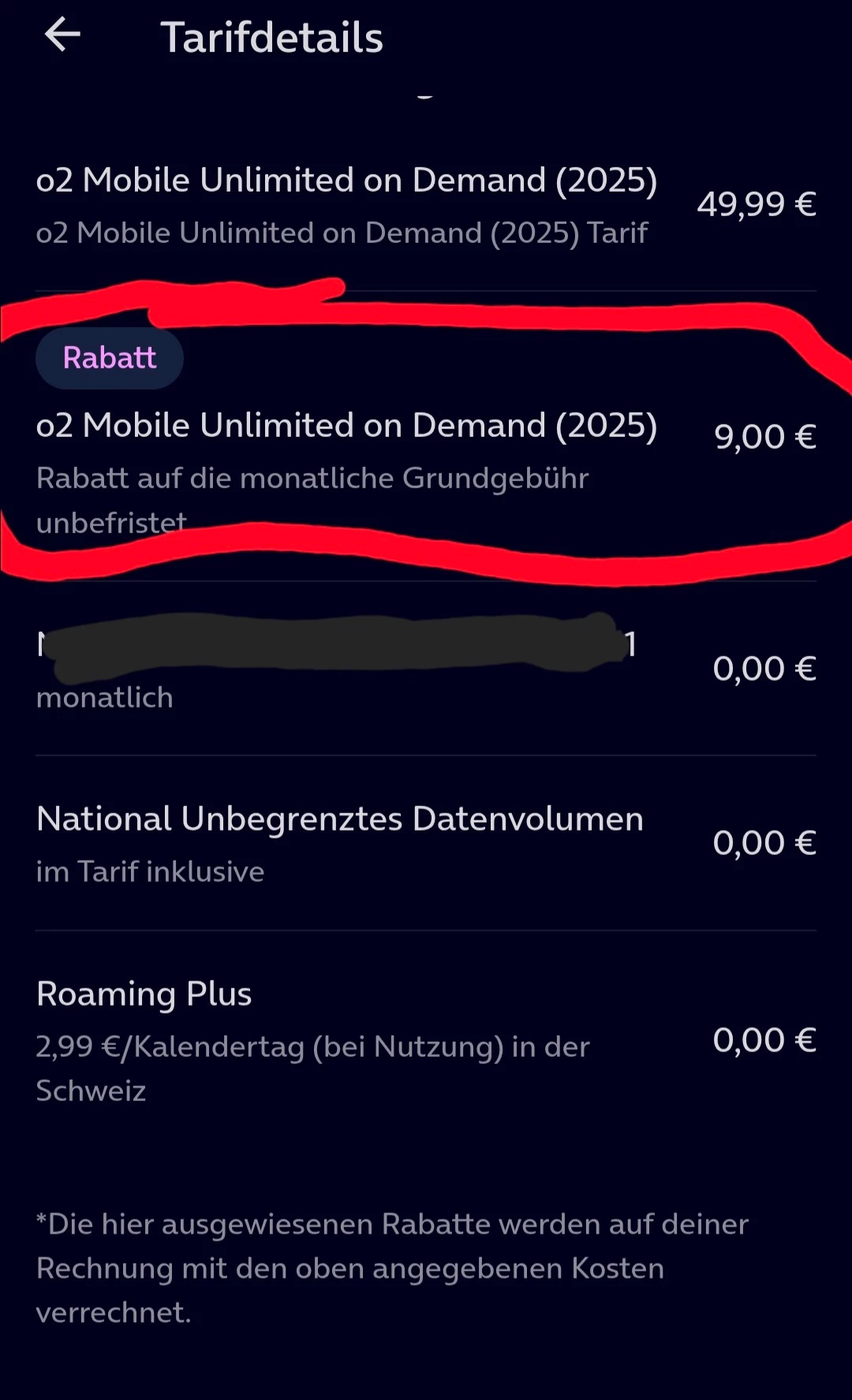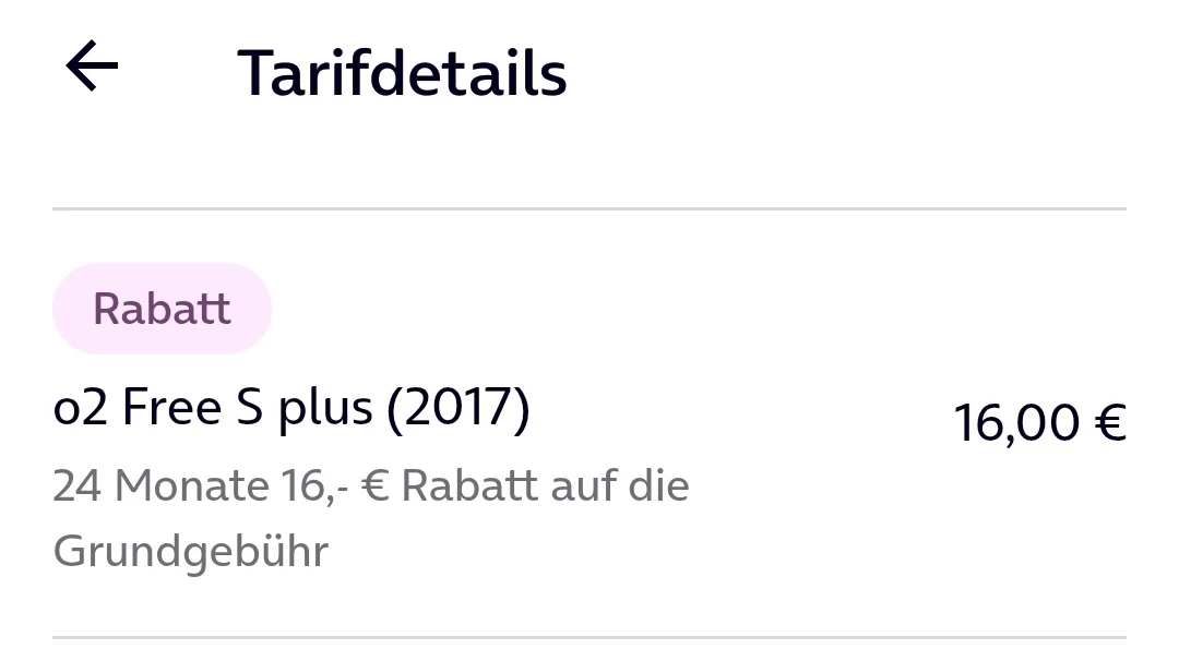 Kanst du da mal den Screenshot einstellen? Persönliche Daten bitte unkenntlich machen. Was steht in der Mein o2 App unter Bertragdetails zu den Rabatten? Steht da unbefristet?