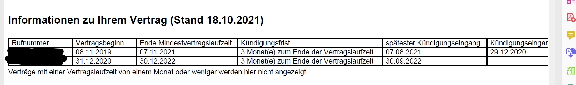 Gar nicht der Vertrag sollte mit der Rufnummer zum 06.11.21 auslaufen