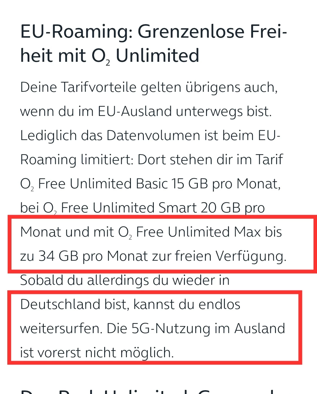 Zudem gibt's für das EU-Roaming  fair use , im Unlimited Max stehen dir maximal 34GB inkl zur Verfügung. Da ist das Unlimited nicht Unlimited.