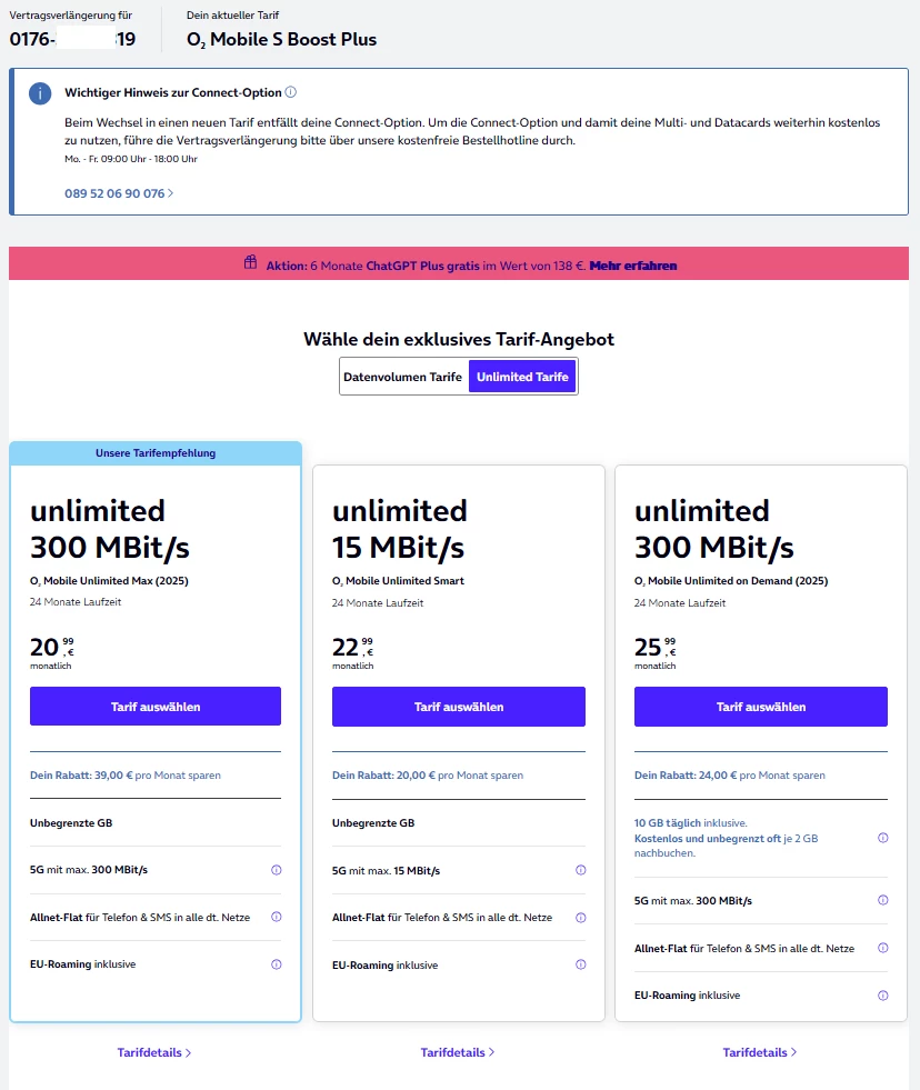 Allerdings ist es so, wie hier schon gesagt wurde, dass die Connect-Option in keinem Fal bei den Unlimited Tarifen hinzugebucht werden.